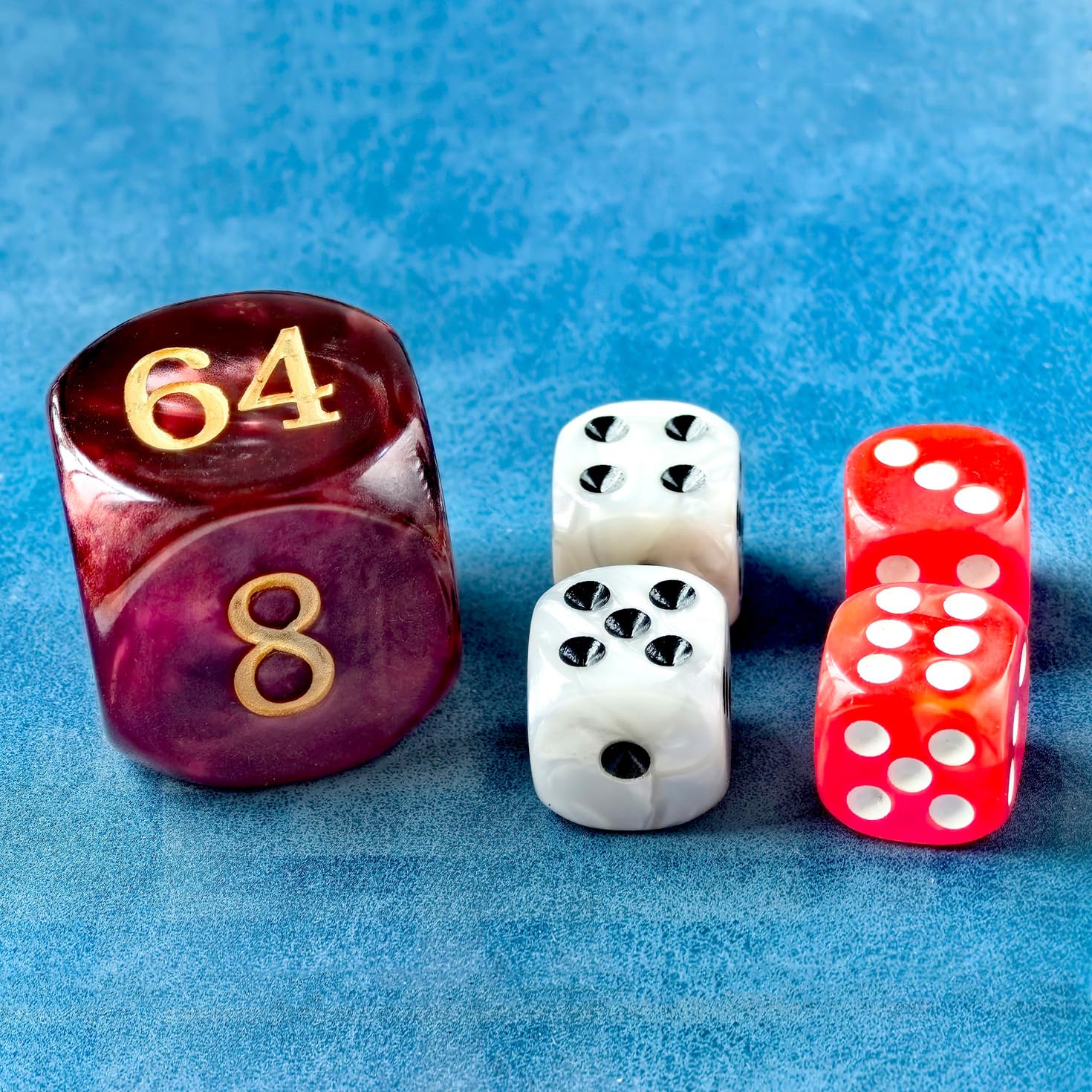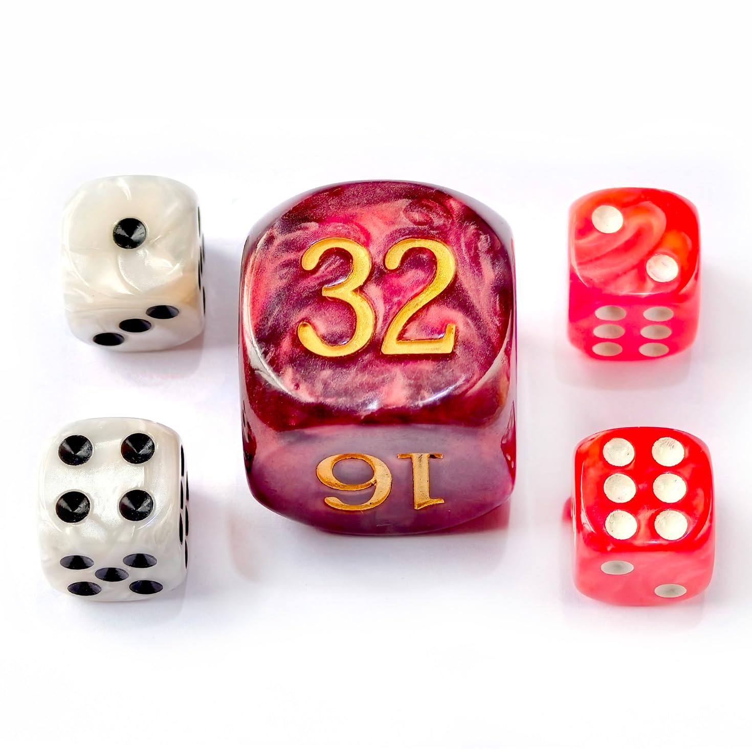 5pcs Set 30MM Backgammon Pearl Dice set – 30MM (1 3/16″) Large Backgammon Doubling Cube Plus 4pcs 16MM Dice (Red/White Marbleized)