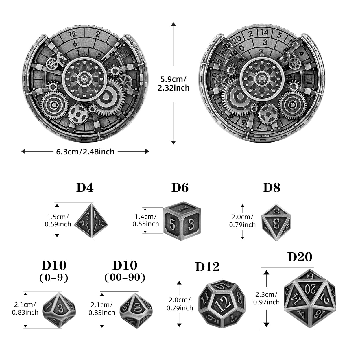 - Versatile accessories: the spinner has artfully designed hollow gear patterns; various three points on each sideand including D20, D10, D8, D12, D6 and D4. Including 1xD20, 1xD12, 2xD10 (one 00-90, one 0-9), 1xD8, 1xD6, 1xD4