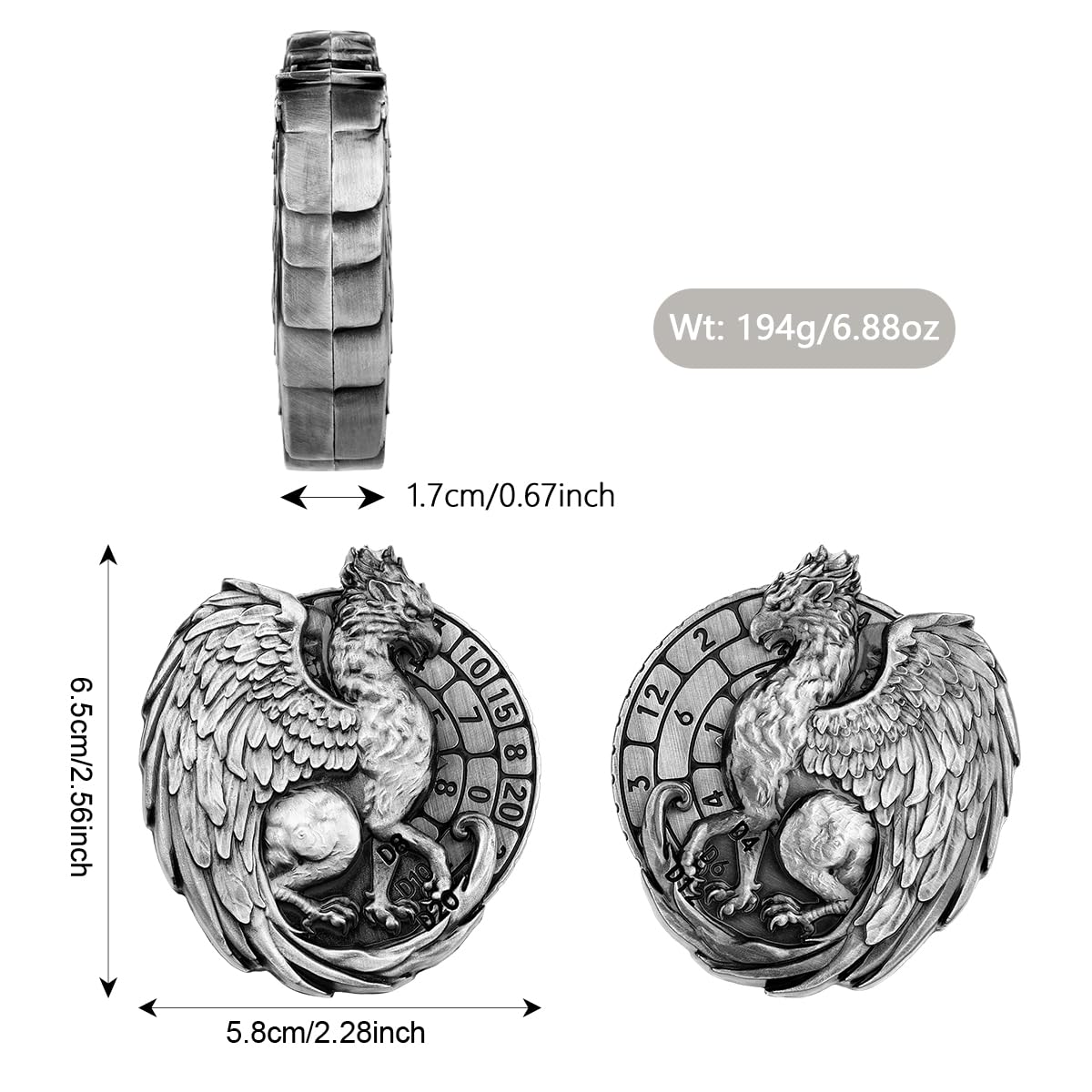 - Unique Griffin Design:This 7-in-1 metal dnd dice set roulette dice spinner stands out with its innovative combination of a compass and rolling dice, offering an unparalleled stimulating experience.The are engraved with numbers representing different dice sets, including D20, D10, D8, D12, D6, and D4