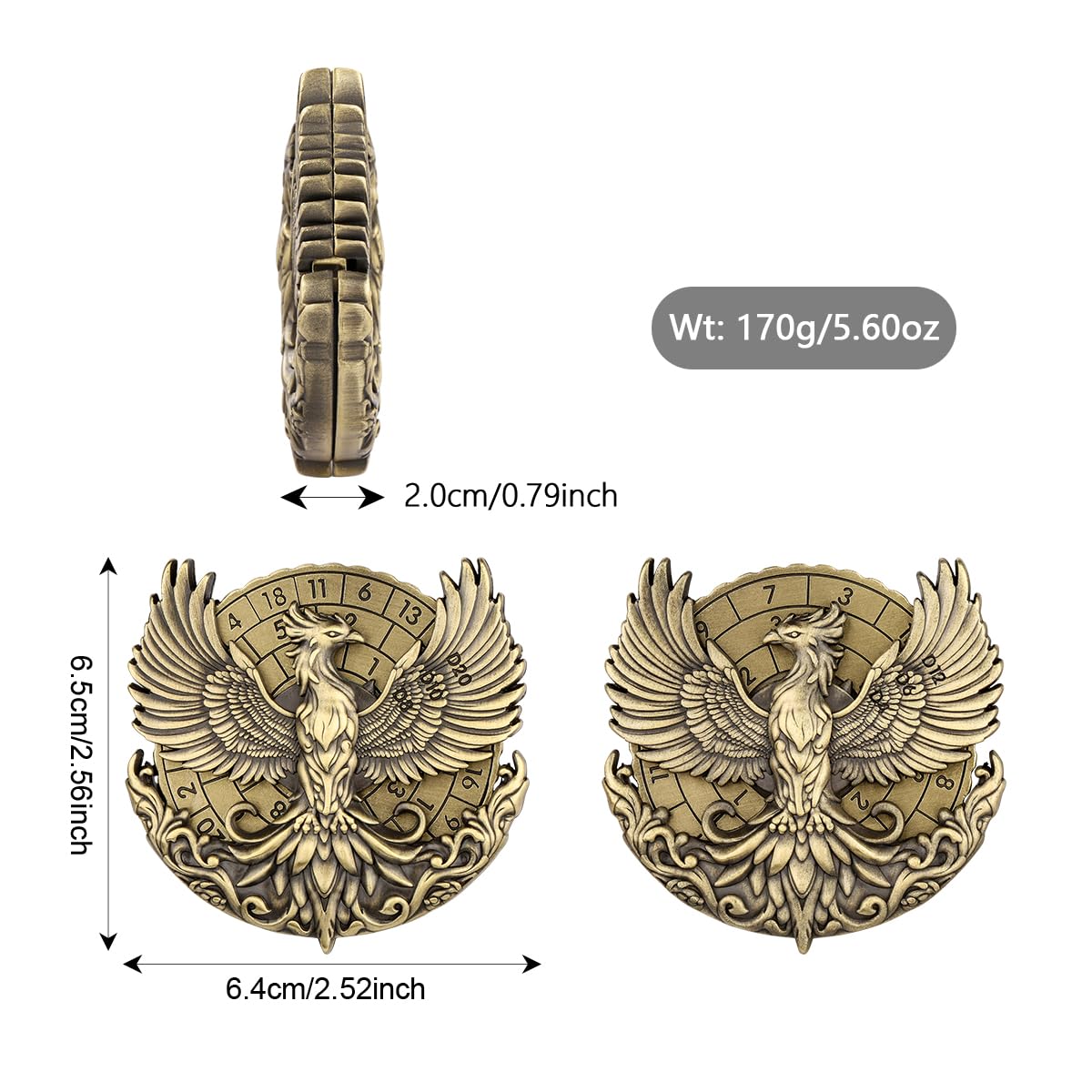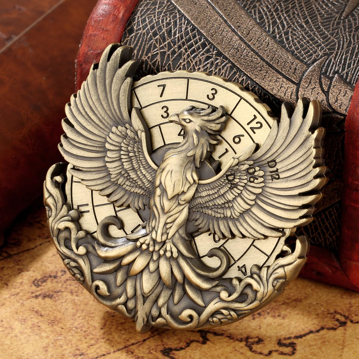 - Unique Phoenix Design:This 7-in-1 metal dnd dice set roulette dice spinner stands out with its innovative combination of a compass and rolling dice, offering an unparalleled stimulating experience.The are engraved with numbers representing different dice sets, including D20, D10, D8, D12, D6, and D4.