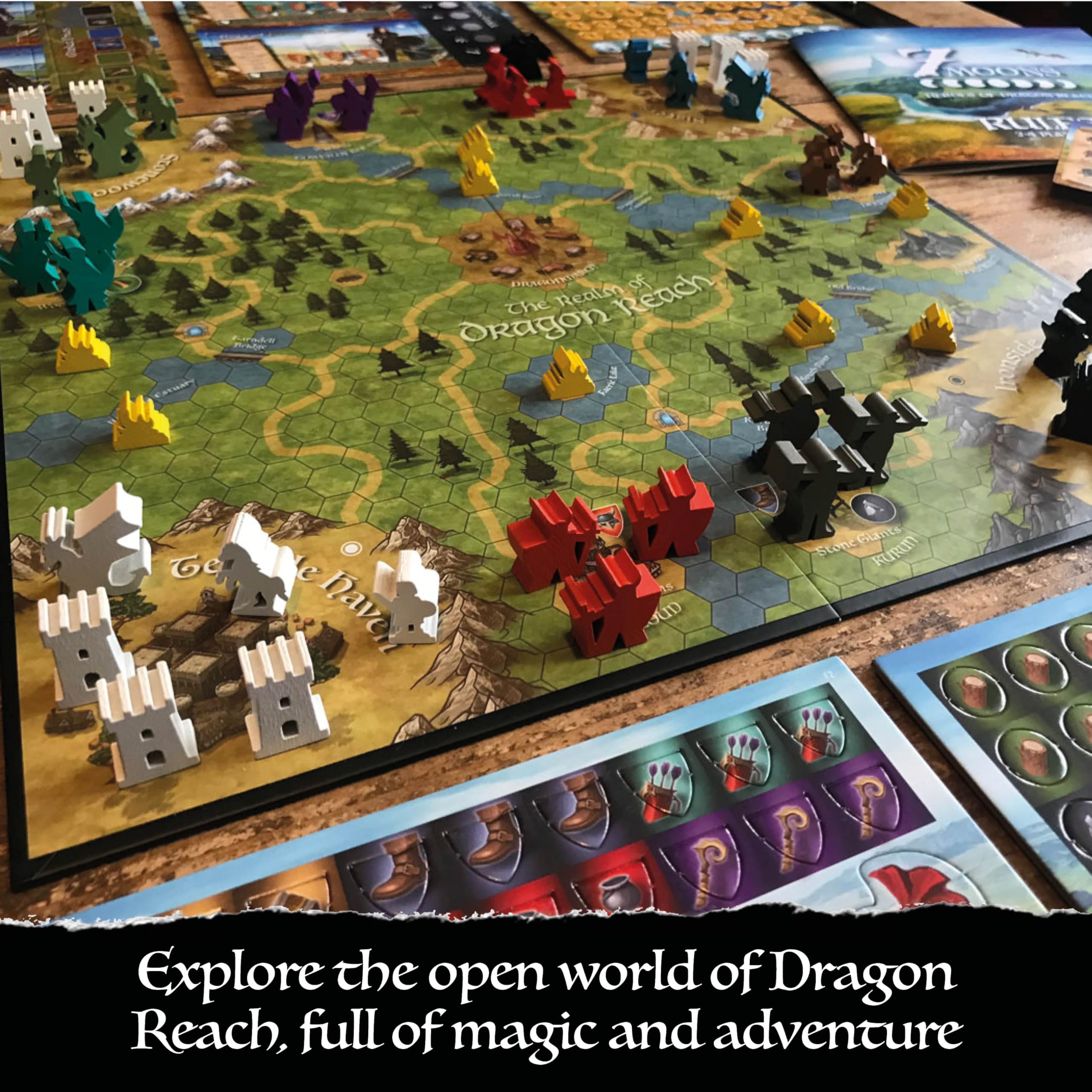 7 Moons: Heroes of Dragon Reach – A fantasy adventure board game from the makers of Bag of Dungeon – Trade, Deliver and Defend your magical kingdom – 1-4 players, ages 7 up