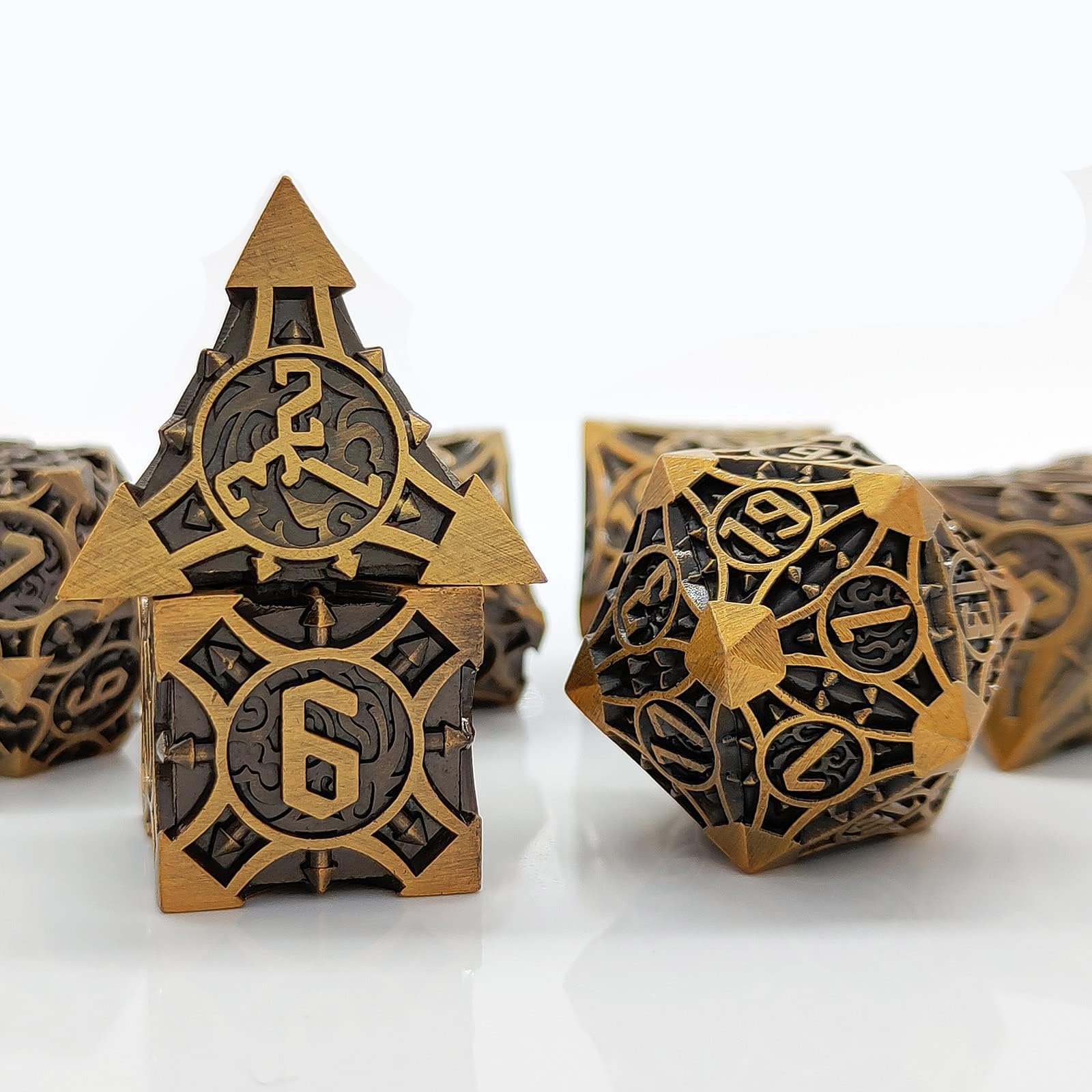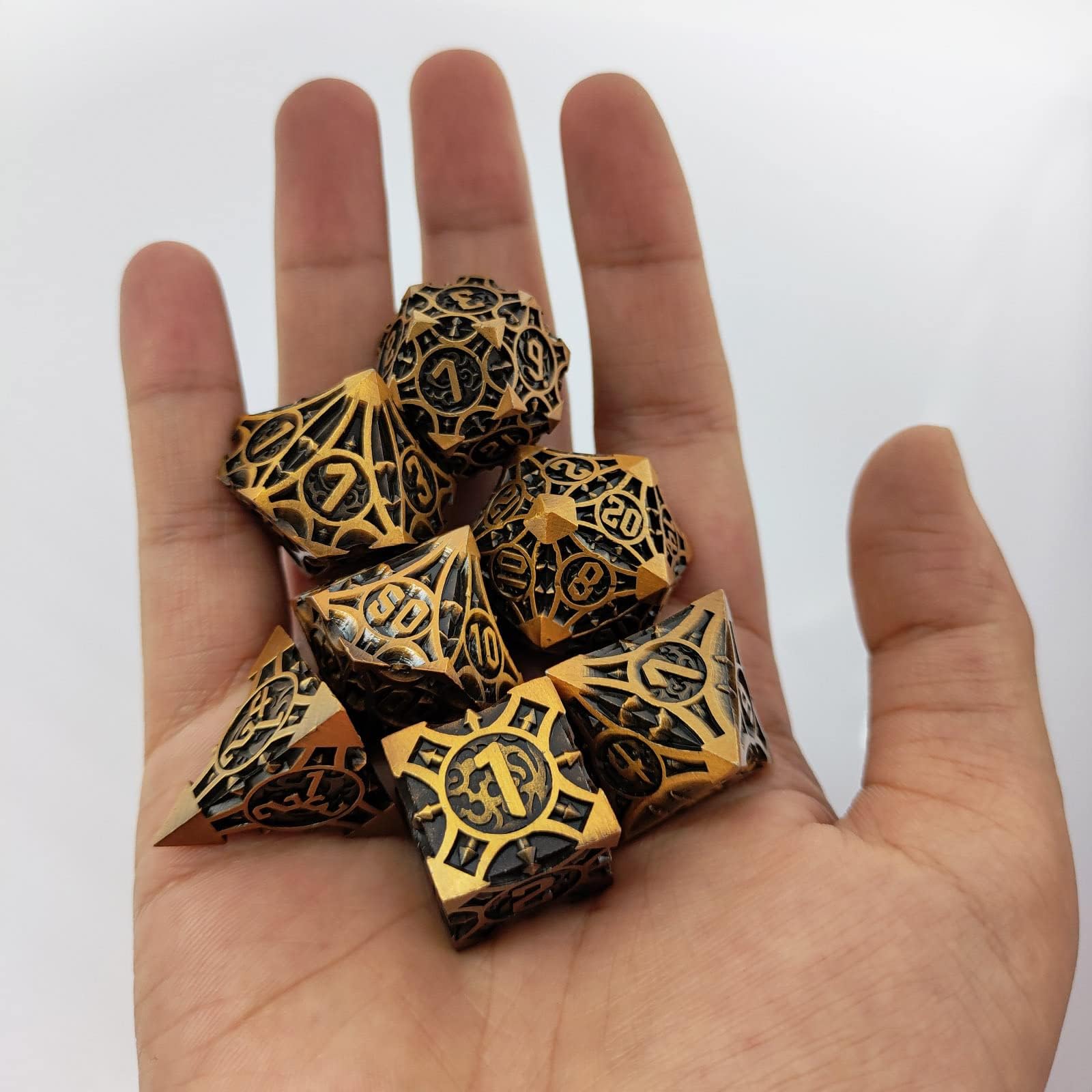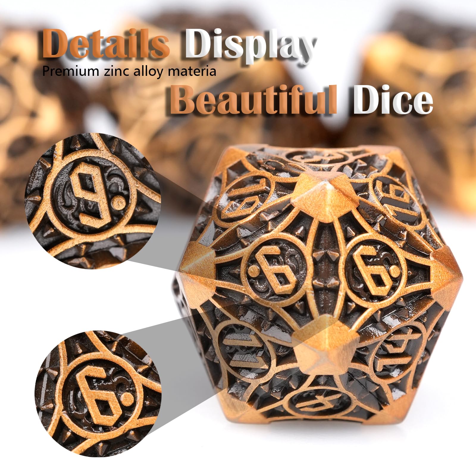 - Excellent Craftsmanship – The metal DND dice set is made of zinc alloy material,rigorously polished, with unique patterns that give it great character,the thick feel and smooth rolling make you feel like you are casting magic in your hands
