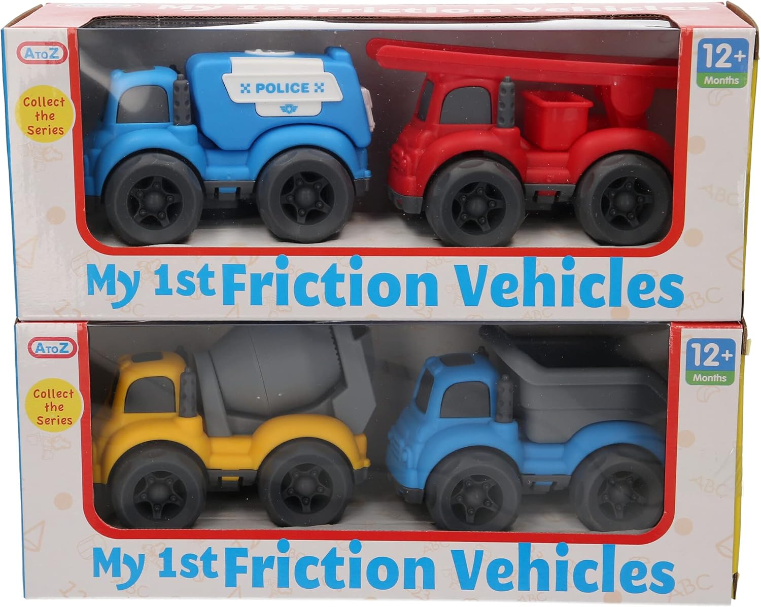 A to Z My 1st Friction Vehicles. Set includes 2 friction vehicles. 2 asstorments to collect( 1 selected randomly) Suitable for ages 12 months & upwards