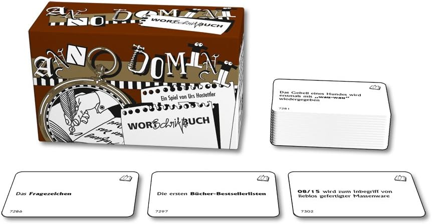 At Anno Domini, it does not about exact knowledge.’Who knows if “08/15″ will become the epitome of unloved mass products” before or after renamed the American hamburger a Salisbury Steak” turn, each player adds a new one to the chain of mostly curious events, trying to be the first to get rid of their cards a player doubts that the event cards are in the correct order, the hour of truth will strike:The cards are turned over and the timing is checked against the given date something is wrong, the player who was right in front of it receives penalty cards. However, if everything is correct, the doubter must draw penalty cards.