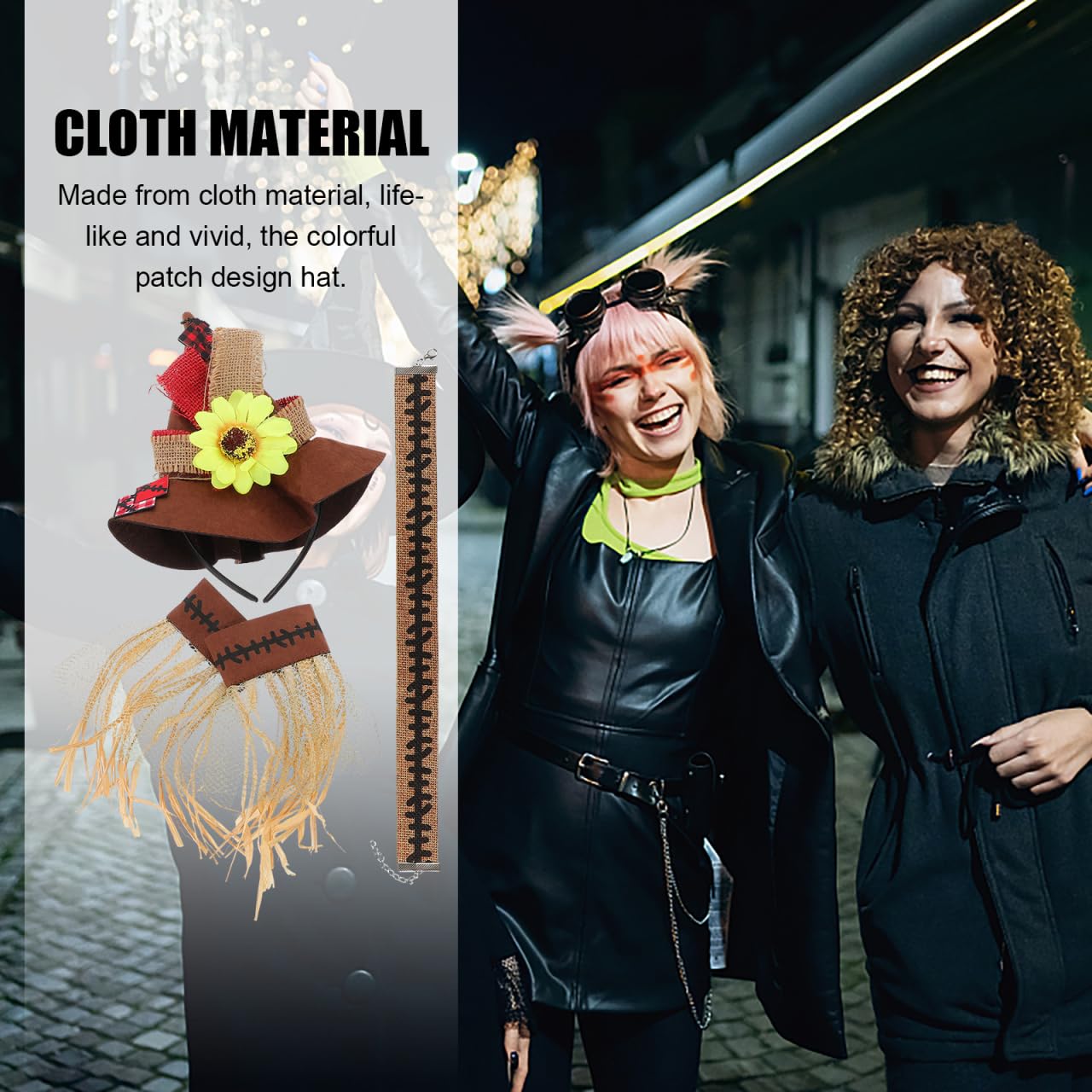 - Polyester Material: The scarecrow hat is made of polyester, making it soft, comfortable, compact, and easy to carry. It’s perfect for dressing up as a scarecrow, witch, wizard