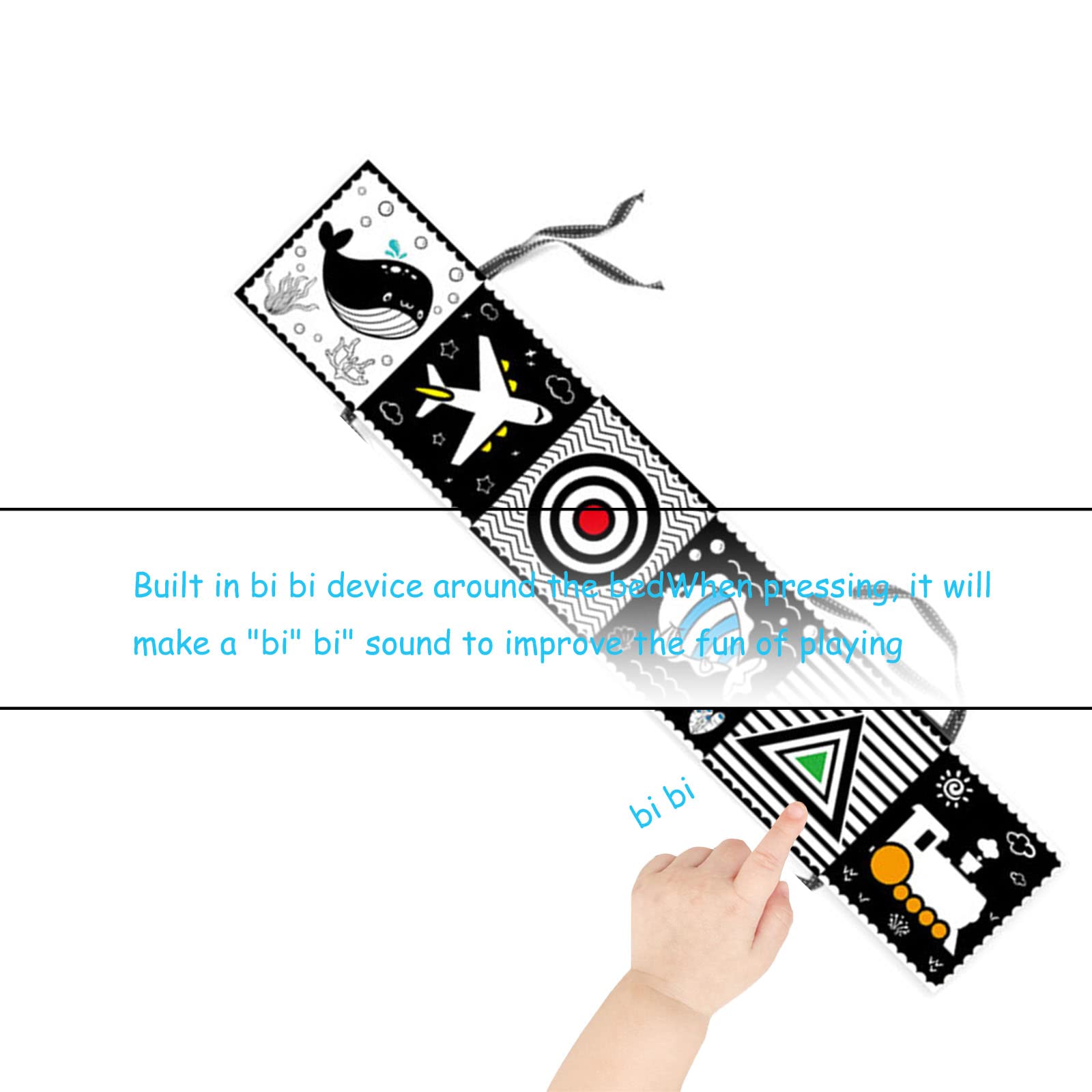 • Enlightening Partner of Newborn Baby: The design of black and white high-contrast double-sided patterns is conducive to the early visual development of infants 0-3 months old. The sound of toys can exercise the coordination ability of hands, eyes and ears of 3-6 months old babies, such as grasping and grasping, to help them sense the world and improve their cognitive ability.