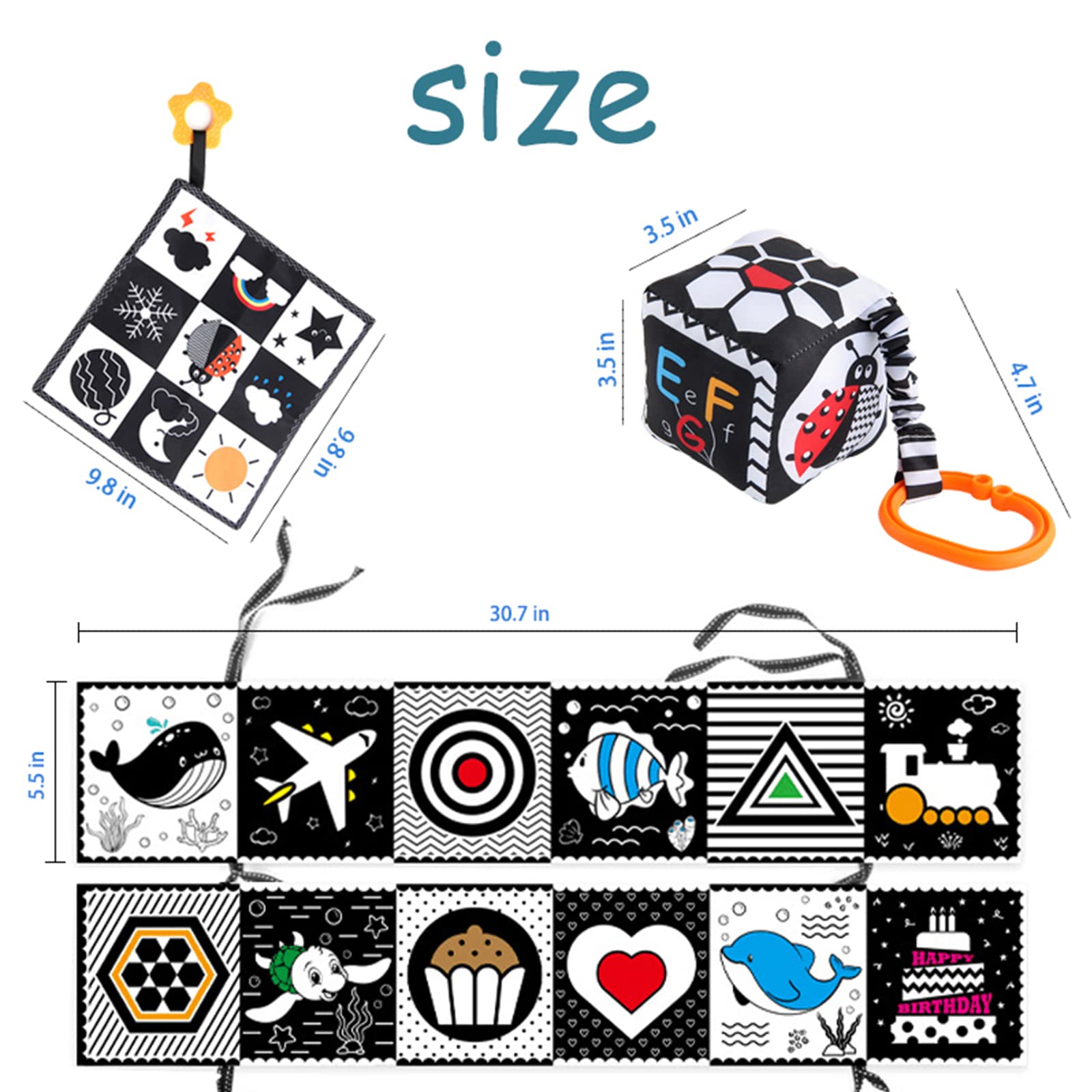 • High Quality and Safe Baby Toys: Our black and white sensory baby toys are made environmentally friendly heat transfer process, non-toxic and odourless. It can be repeatedly cleaned and used with firm stitching and bright colors, without deformation and fading.