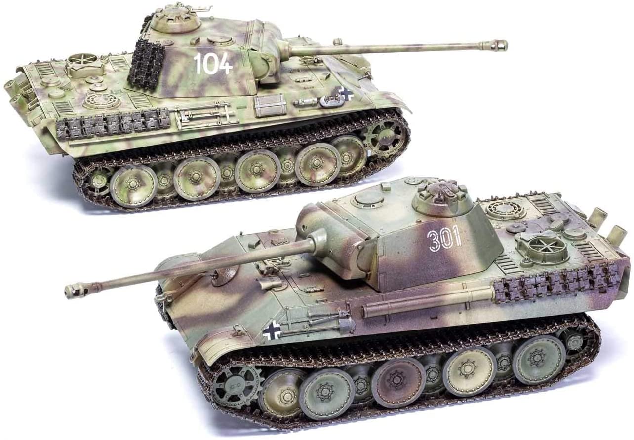 On 3rd April 1944, M.A.N. reported that it had successfully completed trial production runs of the new Ausf.G chassis. M.A.N. built about 1143 Panther Ausf.G tanks between March 1944 and April 1945. Between July 1944 to March 1945 M.N.H. constructed 806 Panther Ausf.G tanks. Daimler-Benz finished 1004 Panther Ausf.G tanks between May 1944 and April 1945e were some minor differences between factory built tanks. M.N.H. fitted a cast steel Gleitschuh skid shoes instead of a rubber tire return roller behind the front track drive sprocket. The other two factories continued to fit rubber rimmed return rollers. Please note, box and model dimensions are shown as identical however only represent the box/package size.