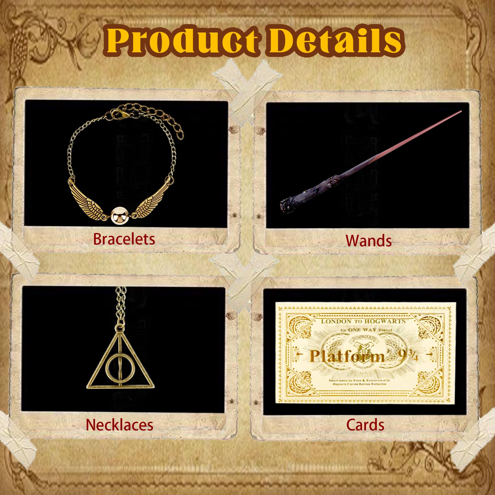 - Product Includes1 x Wand, 1 x Gift Box, 1 x Spell Card, 1 x Station Ticket, 1 x Necklace, 1 x USB Cable, 1Bracelet. Compatible with DIY Magic Box Wizard game, unlocking unlimited gameplay from solo to group, it is ideal for role-playing, as a gift, or for Monopoly night.
