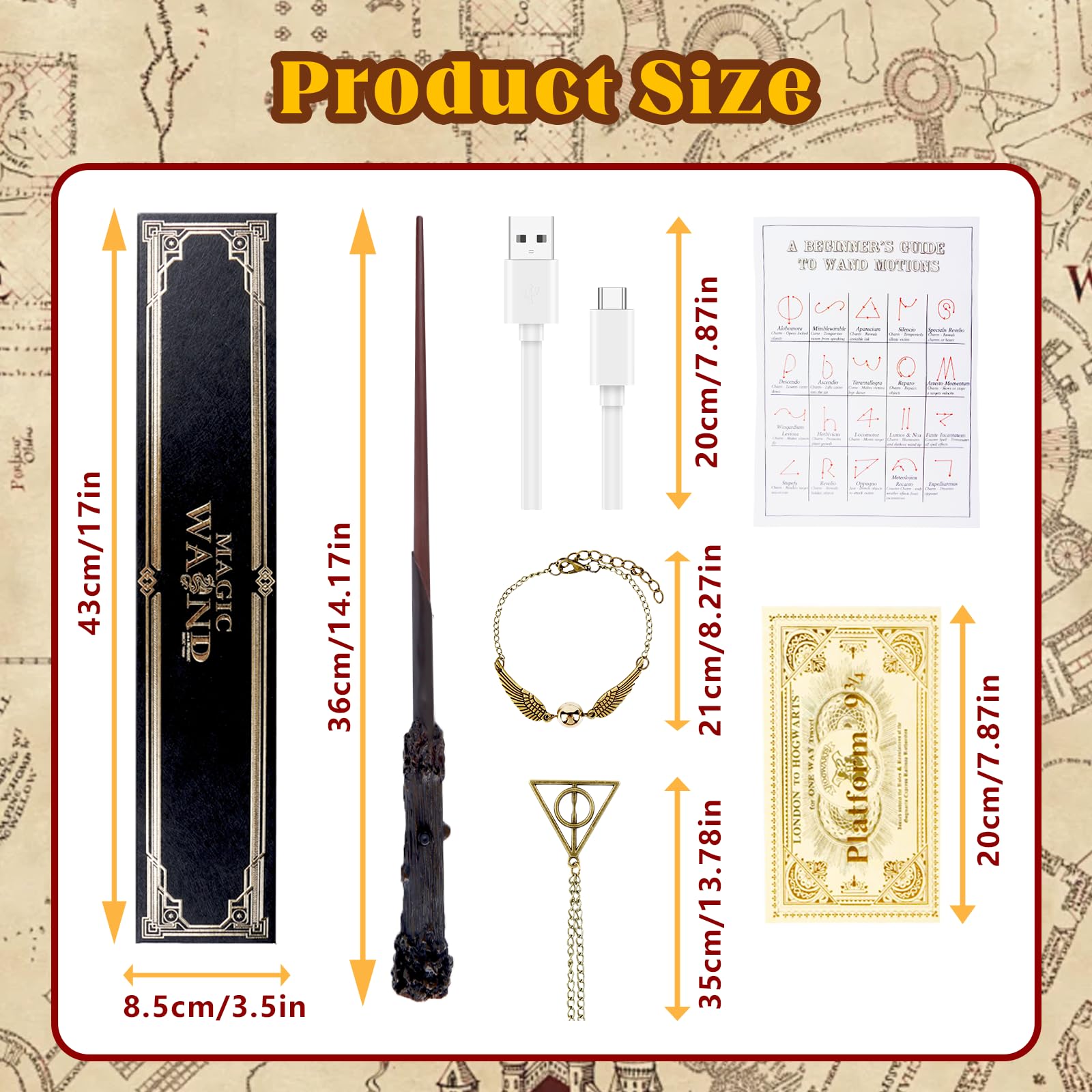 Aitsite Magic Wands, 35CM Wizard Wands Glow, USB Charging Light Up wand, Magic Wand in Gift Box with Spell Card, Station Ticket and Necklace Bracelet Official Wizarding Wand