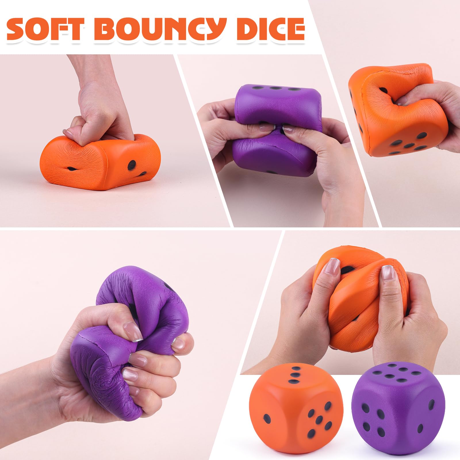 Anboor 2 Pcs Large Foam Dice for Adults Kids – 3.54″ Jumbo Big Dice Giant Soft Fun, Colorful Dices for Game Nights & Classroom Activities (Orange & Purple)