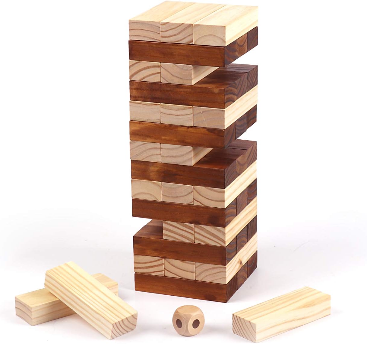 The incredible tower made of wood with sliding parts, with dice. Good gameplay. To enjoy it with family.