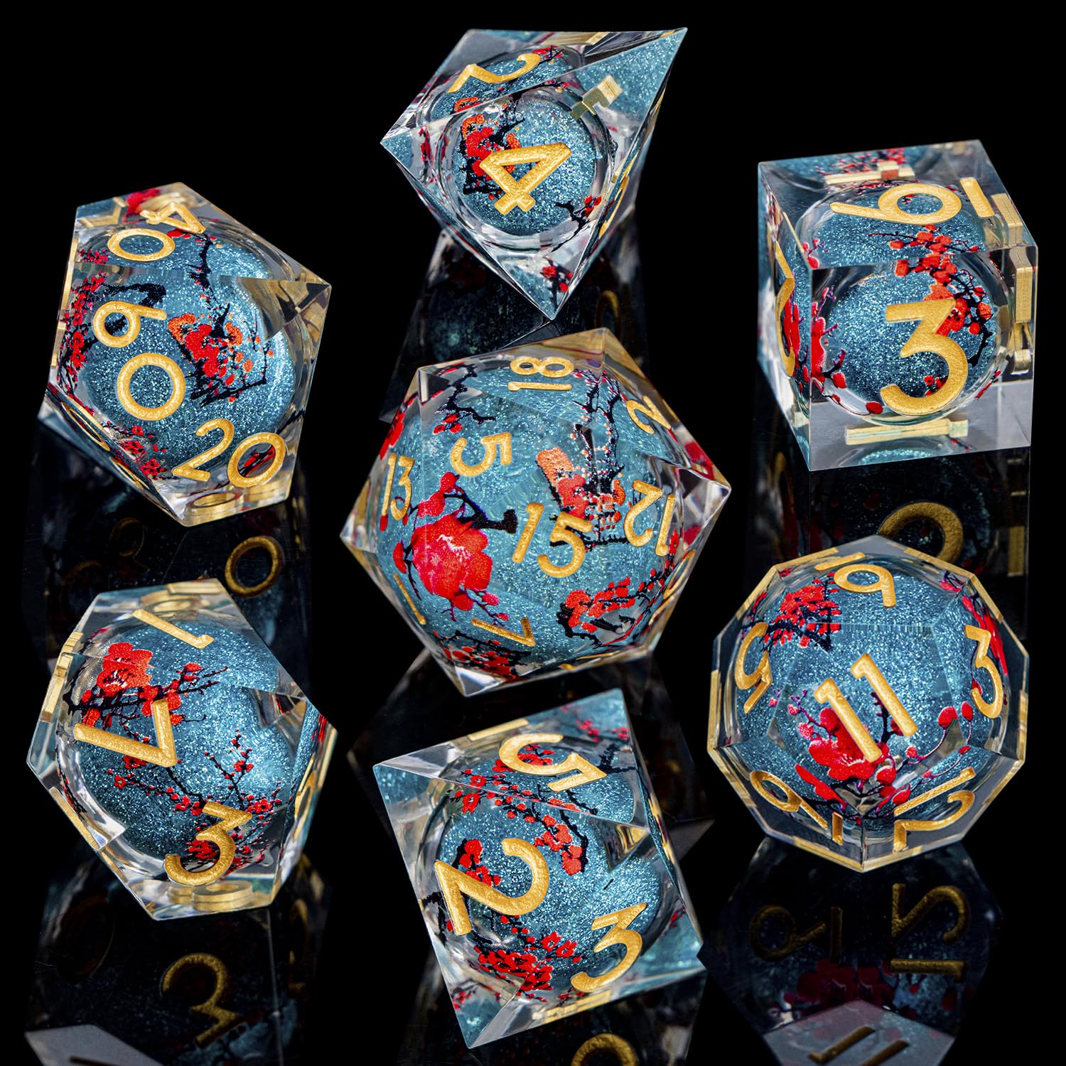 Clever Design : The d and d dice contain liquid core quicksand balls, and different angles will produce different visual effects. while delicate plum blossom decals on the surface add an elegant, nature-inspired touch. D and D dice will receive a lot of praise and jealousy.