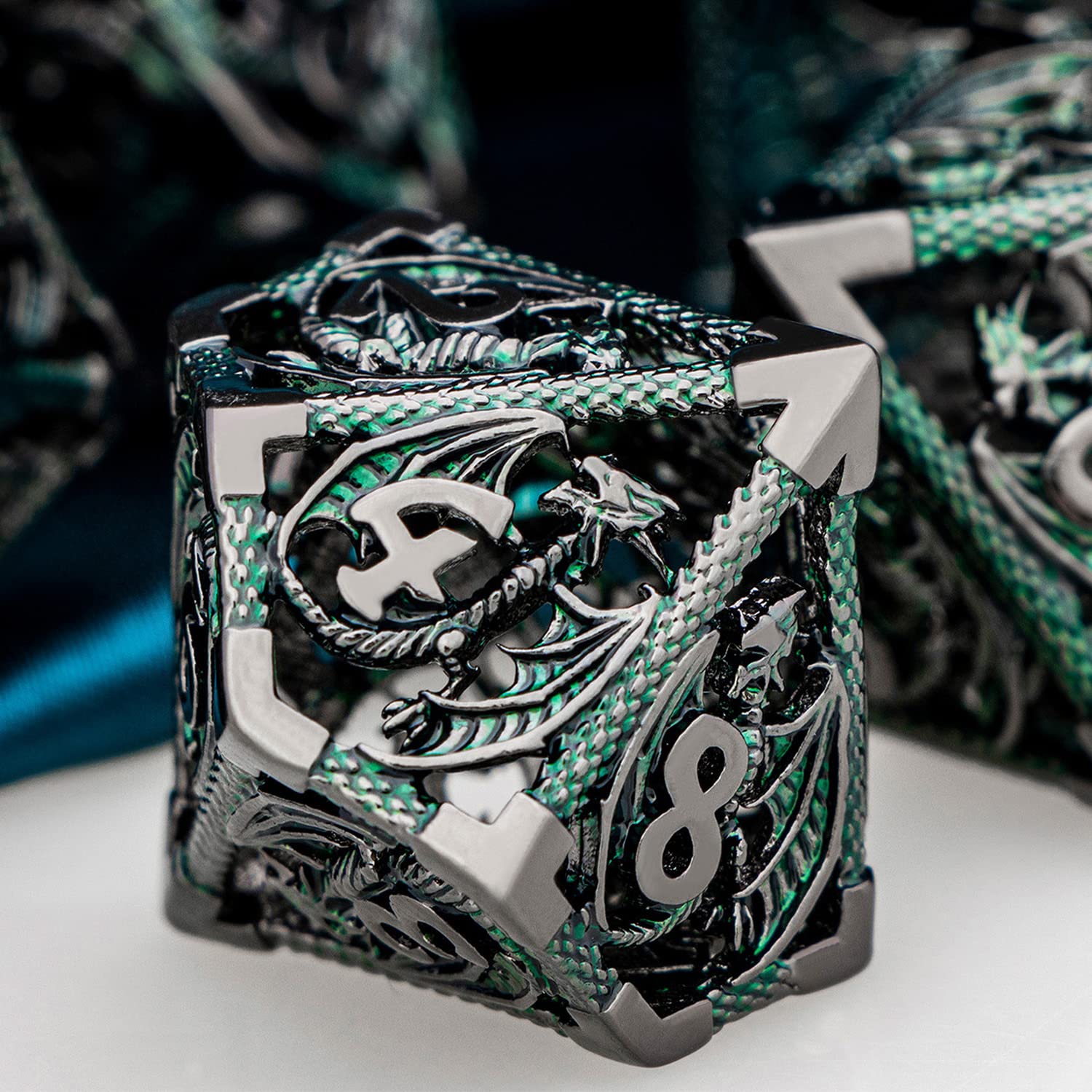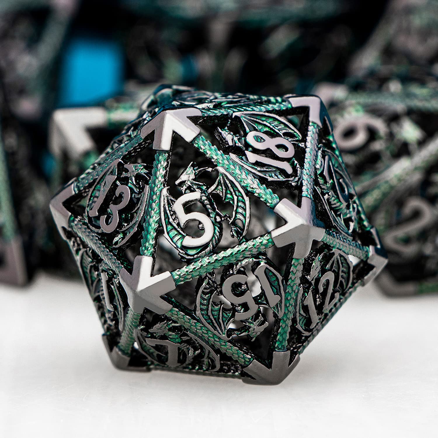 - Hollow DND Dice: The RPG dice set use dragon as the main element. The numbers on the dice are clear and easy to read, They are perfect in detail and well crafted. When they are placed on the table, they will get a lot of compliments and envy