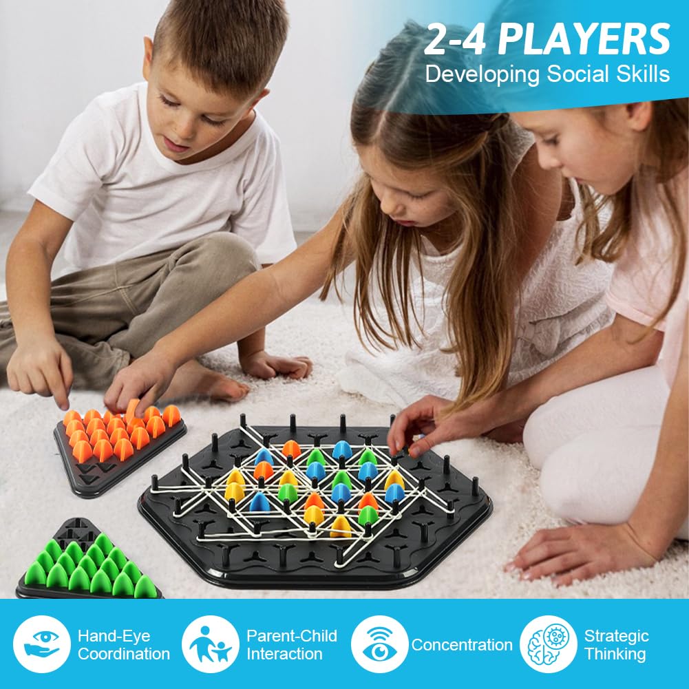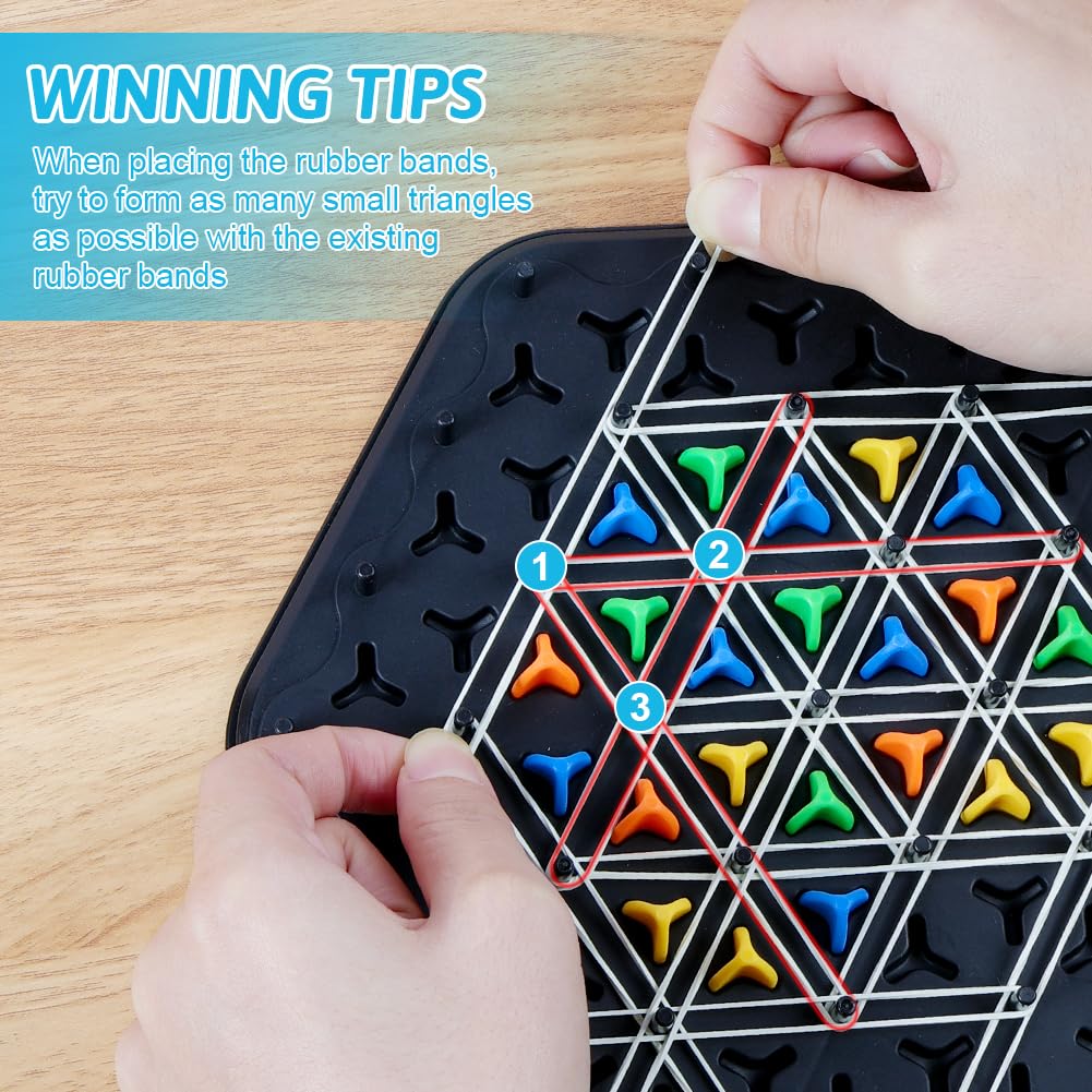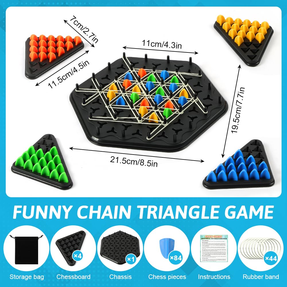 AYESY Geometric Chain Triangle Chess, Triggle Rubber Elastic Band Board, Kids Strategy Game Educational Brain Teaser & Puzzle for 2 to 4 Players – Small