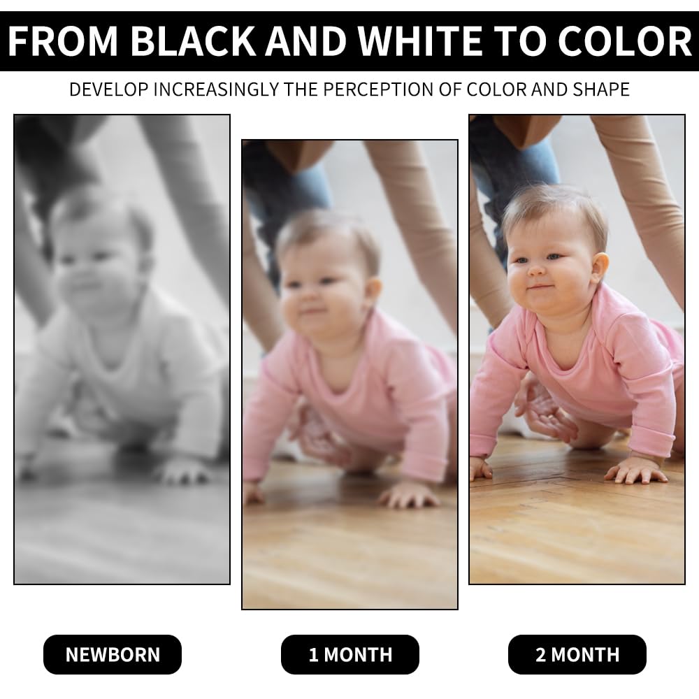 VISUAL DEVELOPMENT: Designed with high-contrast black and white animal illustrations, this crib activity toy stimulates visual development and cognitive growth during an infants critical early months. The engaging patterns capture the babys attention and enhance focus.