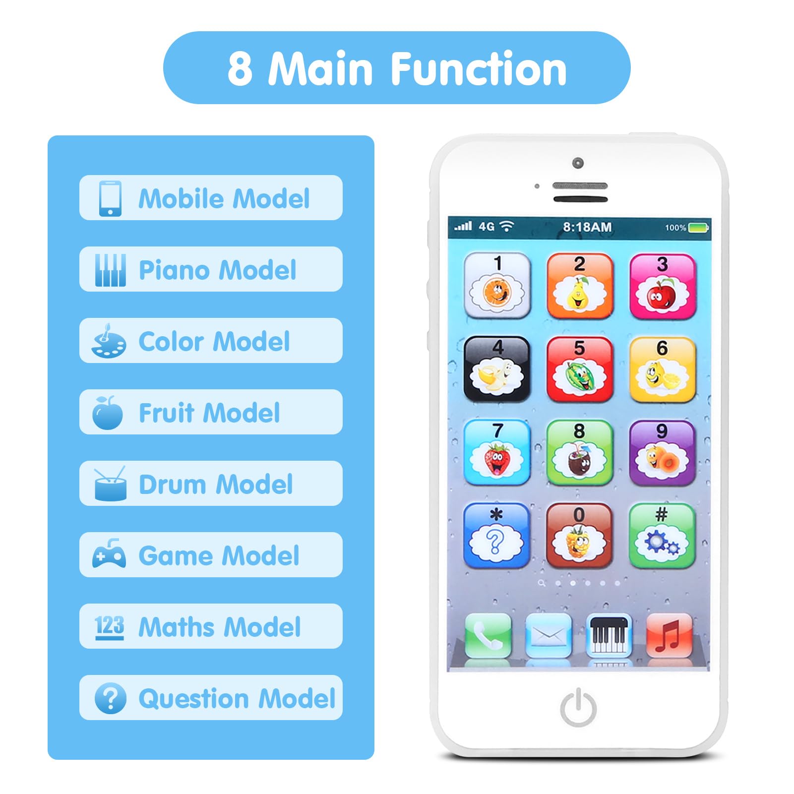 • Interesting Early Education: Mobile phone toys stimulate children’s curiosity in learning through touch, sound and vision. It has 8 different modes and a lot of sound effects. This toy mobile phone can help improve children’s listening, musicality and thinking ability, and children’s memory and concentration