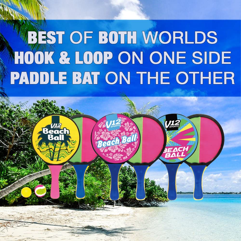 2 GAMES IN ONE – This set comes with bats that are smooth on one side for standard beach bat game. The otherside is hook & loop and the set includes an addition ball for this side that sticks!