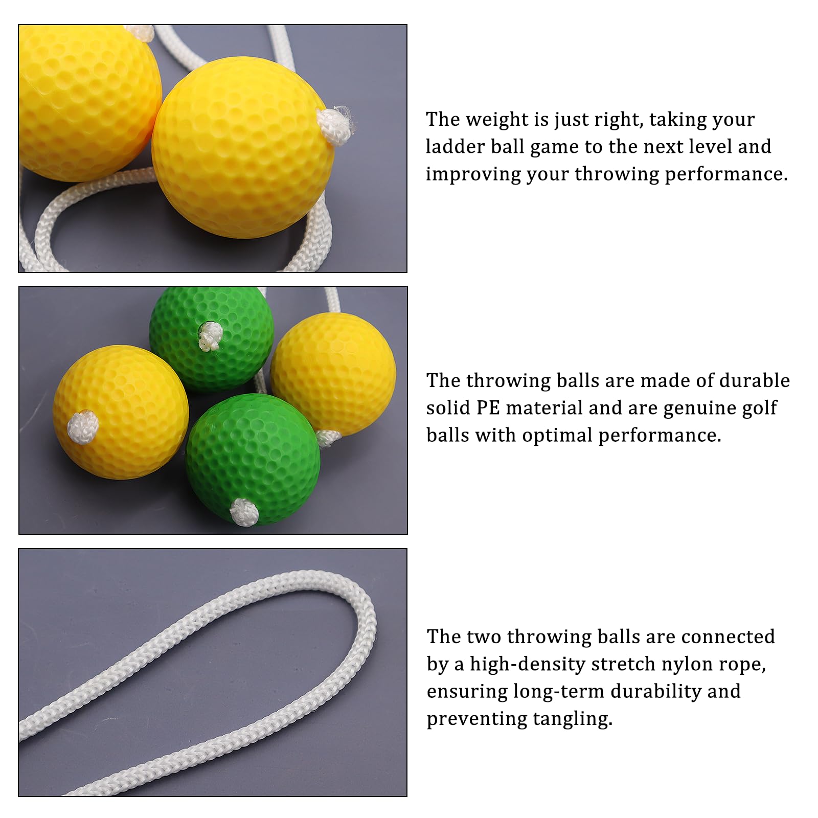 - Precise throwing experience with ladder golf ball for toss game: each ladder golf ball for toss game is precisely balanced for reliable casts. Simple rules promote motor skills, coordination and guarantee interactive family fun.