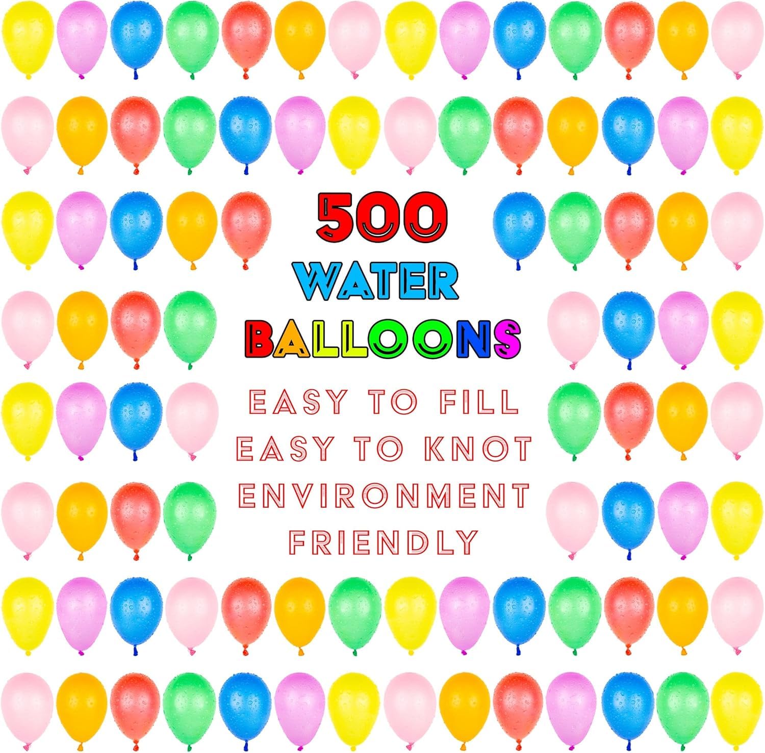 - Scope of supply: 500 super elastic water bombs with filling aid attachment in bright colours: red yellow purple blue orange pink green. Size of single balloon maximum (with water): 17cm x 10cm Size of single balloon (without water): 5cm x 2cm.