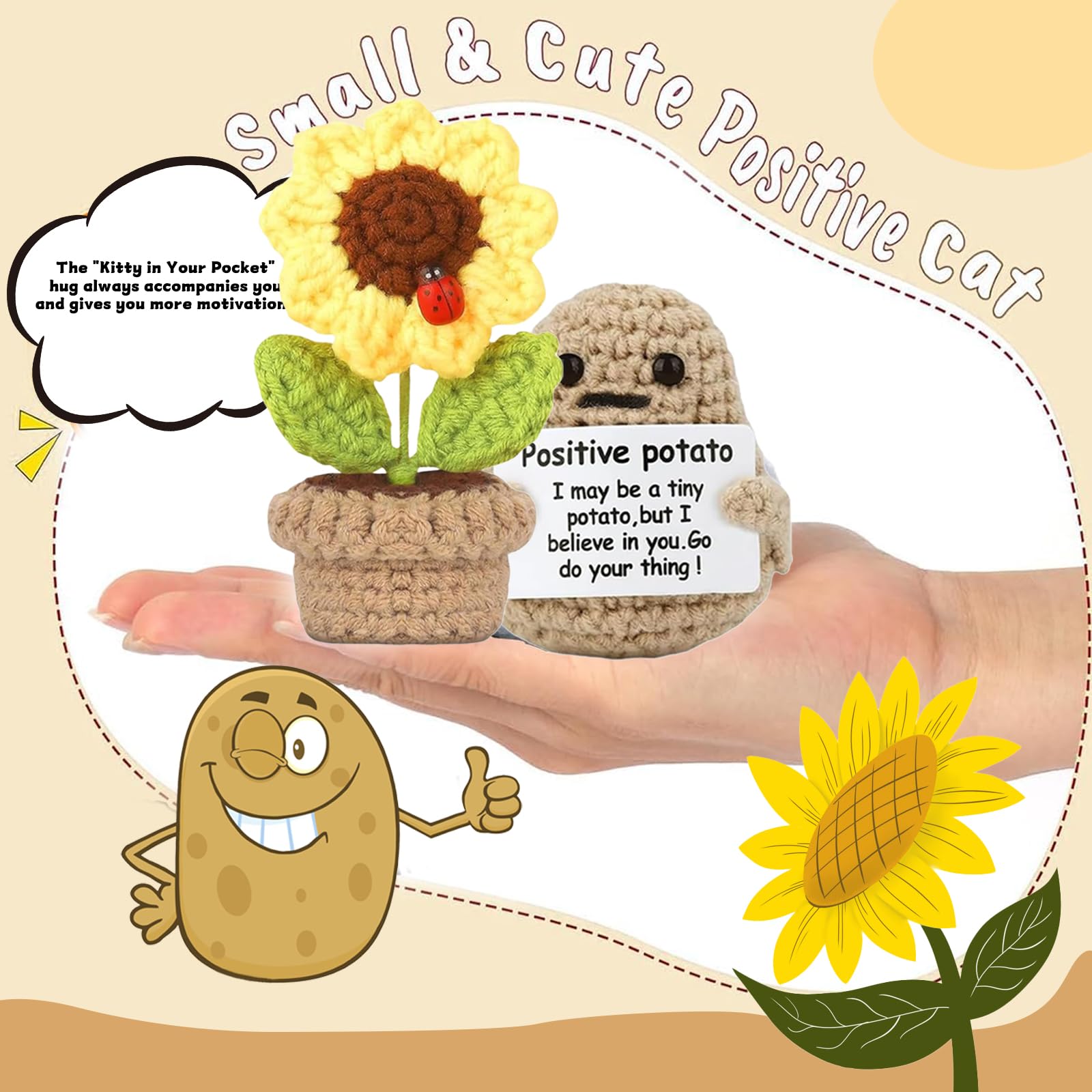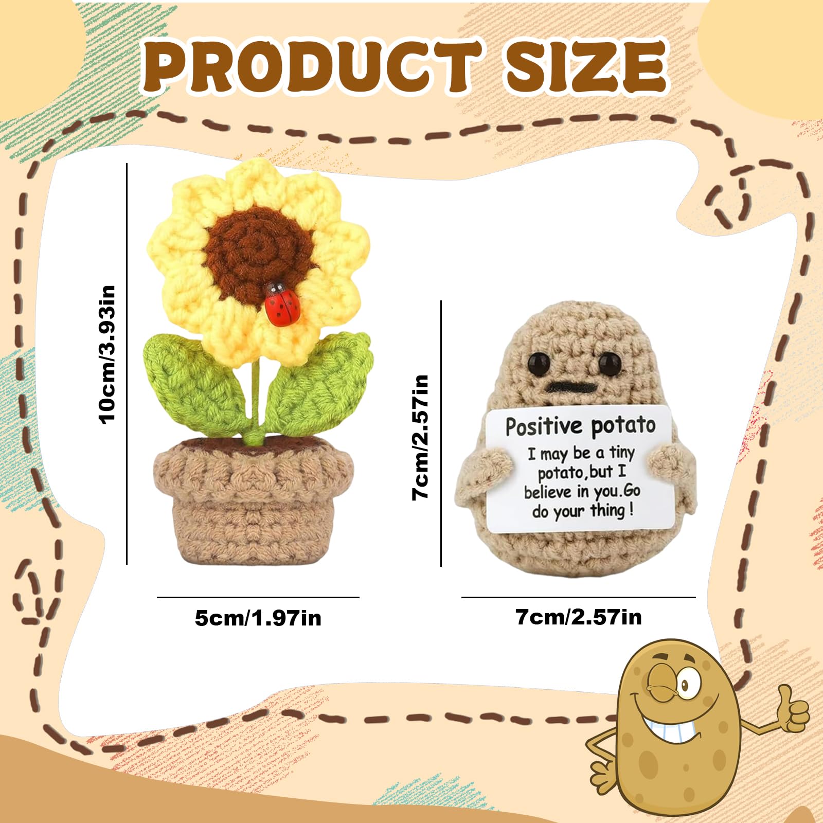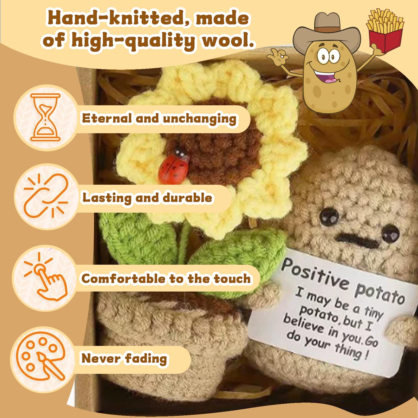 Emotional Support Gift,New Job Gifts For Women, 1 Positive Potato And 1 Sunflower Potting Pot, Suitable Positive Gifts For Adults And Children, Convey Encouragement And Happiness 【Emotional Support planters】: Set includes a positive potato planter and a sunflower planter; Each piece is designed with exciting details; Add a positive vibe to any space; Warm messages are written on them to spread support and encouragement. 【High quality materials】: Emotional support gift Crafted with high quality knitted wool; Durable and safe for both adults and children; Lightweight but sturdy structure for easy placement; Designed to fit any home or office decor. 【Uplifting And Encouraging】: Positive gifts can serve as daily reminders of uplifting and encouraging. They are ideal for boosting morale, spreading happiness, and are a unique way to express support and care for special occasions or everyday gifts. 【Simple and versatile】: You can put positive potato and flower POTS on a desk, shelf or windowsill; Suitable for small plants or decorations; Easy to clean and maintain, Add a cheerful atmosphere and uplifting color to any room. 【Perfect For Every Occasion】: Positive gifts for women, men or children; Suitable for birthdays, housewarming or new job celebrations; A thoughtful way to show support during difficult times; Ideal for home, office or classroom environments.