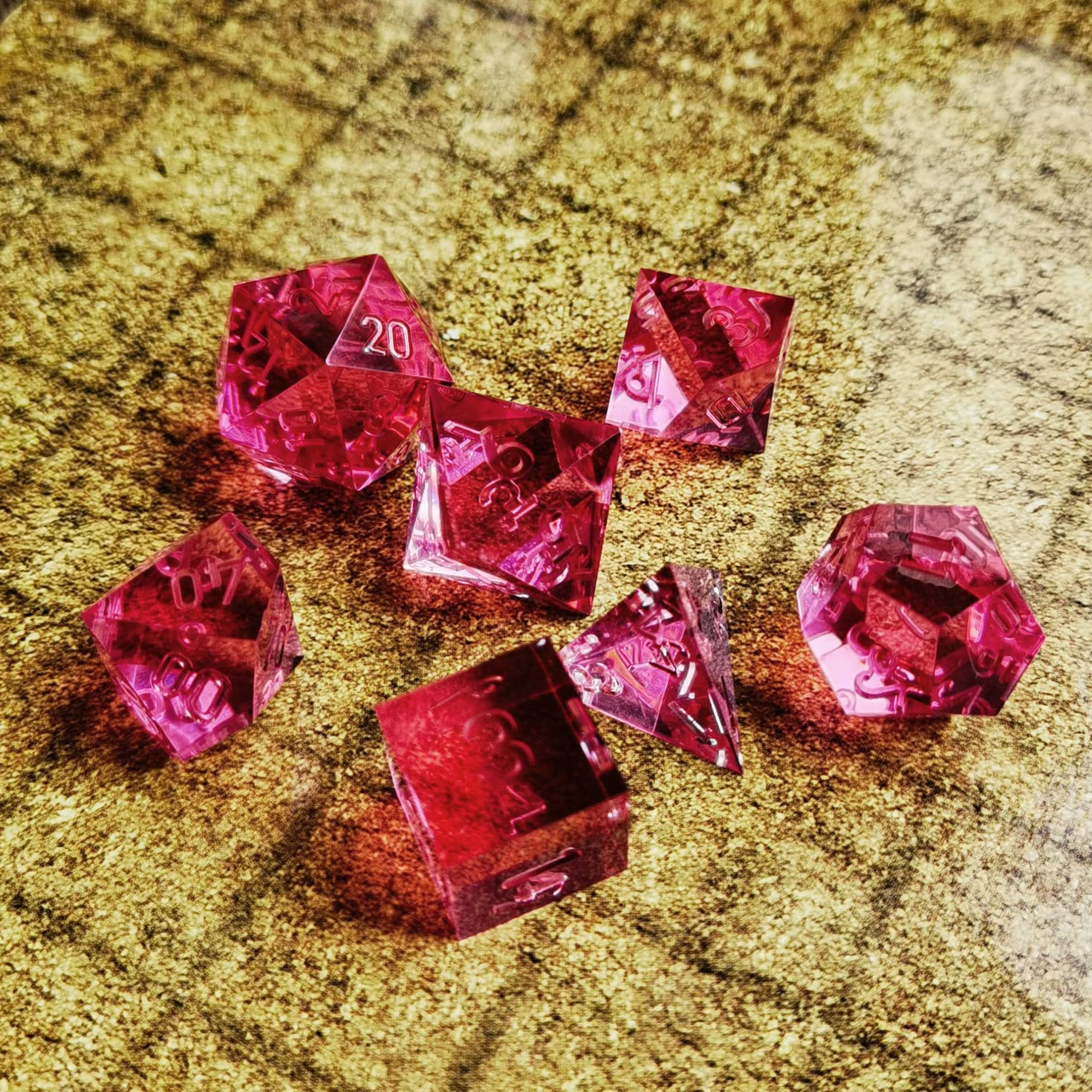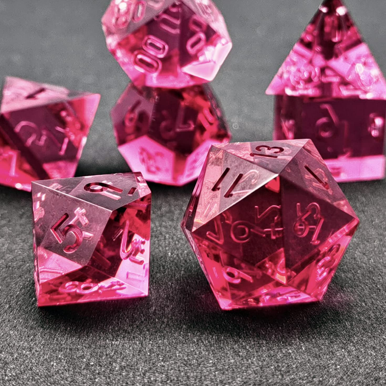 Bescon Crystal Clear (Unpainted) Sharp Edge DND Dice Set of 7, Razor Edged Polyhedral D&D Dice Set for Dungeons and Dragons Role Playing Games, Fuchsia Color