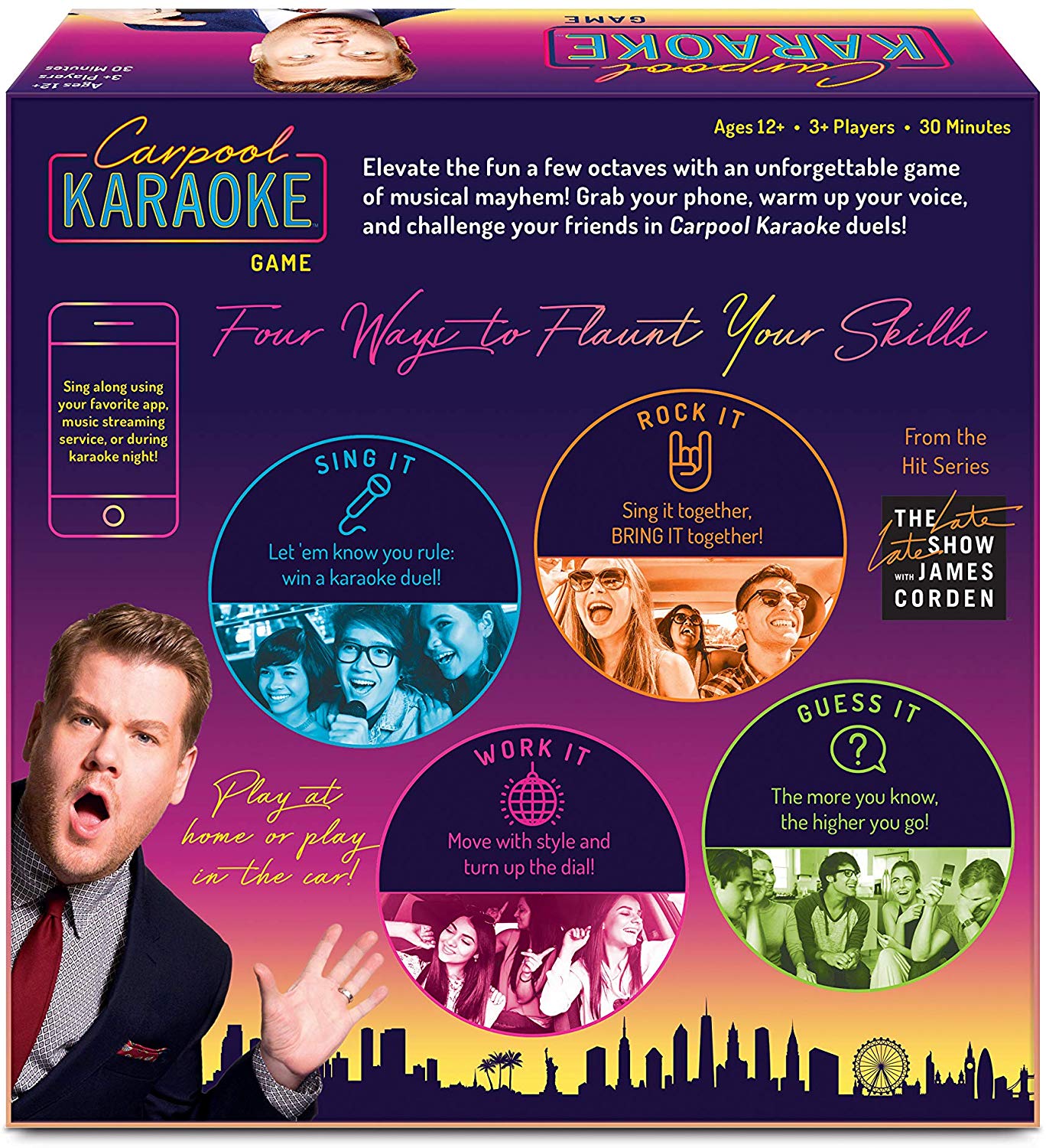 Elevate game night a few octaves or impress your ride share driver with a new kind of party game! Using your favourite music streaming service, take turns completing challenge cards. Choose from three different categories: GUESS IT – Trivia about popular artists and guests of the Carpool Karaoke show! SING IT – Name or sing part of a song that describes a life event, or sing a song under special conditions! FINISH IT – Start singing and then complete the next line of lyrics when the music goes off! Will your friends love your performance? They vote YES or NO. Earn the most YES votes and be declared the Carpool Karaoke champion!