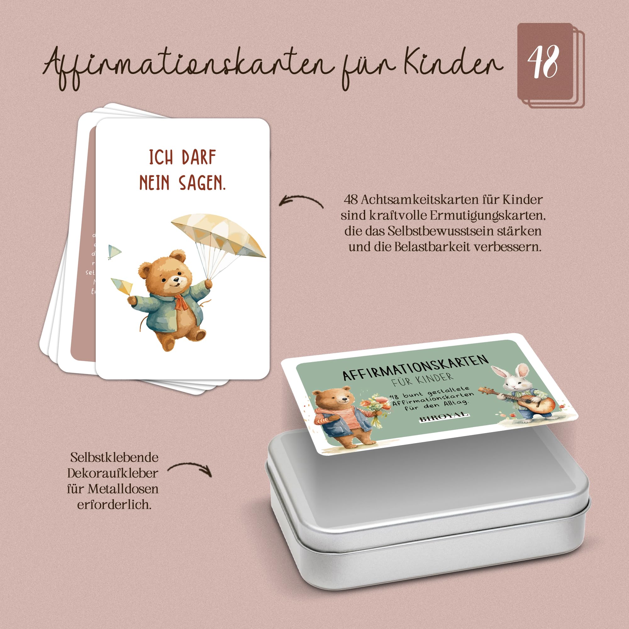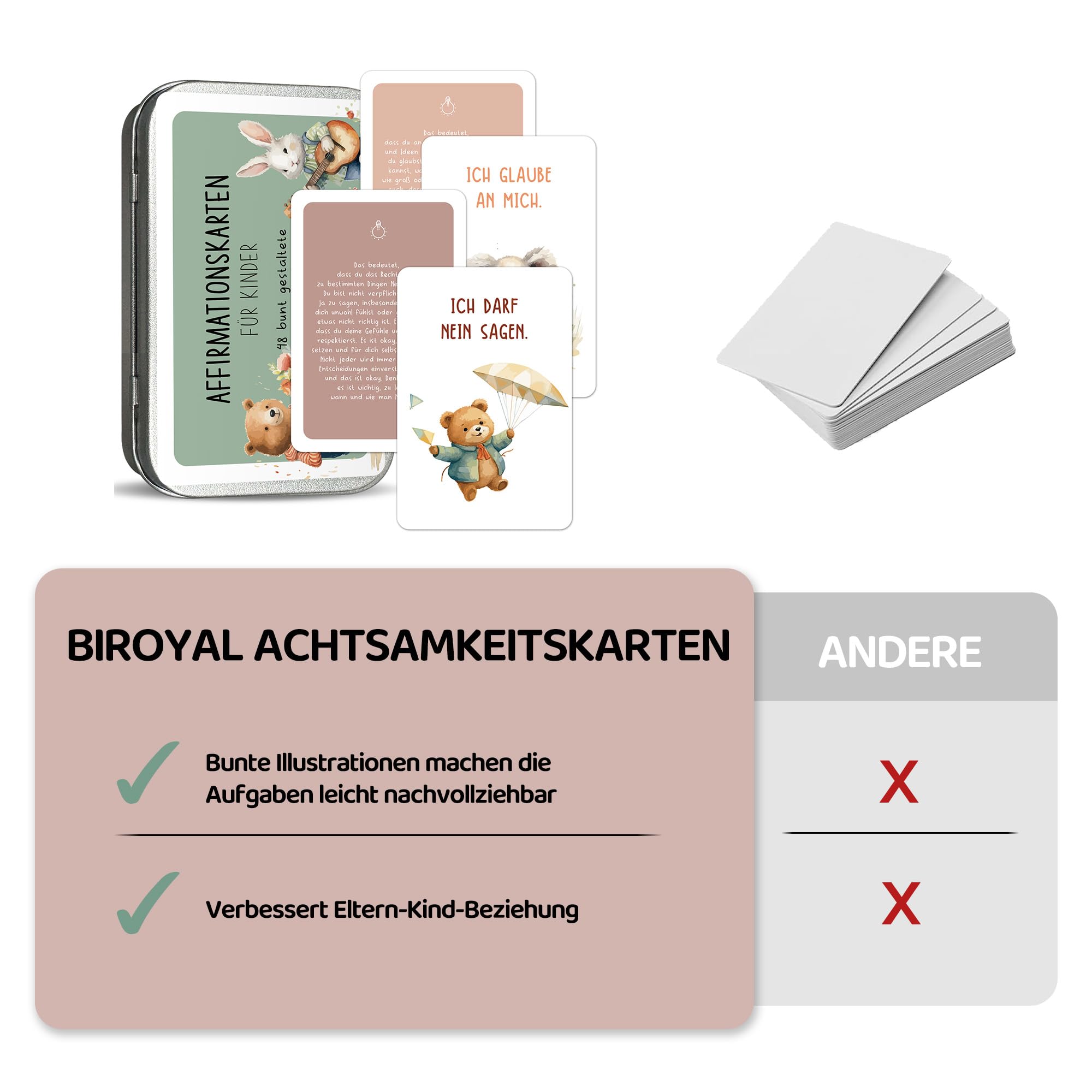 BIROYAL Mindfulness Cards for Children, 40 Affirmation Cards, Self-Confidence, Courage, Gratitude, Ages 36+