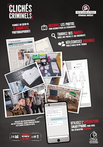 Blackrock Games CRIMINAL CLICHES – Immersive and Cooperative Investigation Game with Interactive App – Ages 16 and over – 3 investigations – Photos and Realistic Documents – Blue Cocker