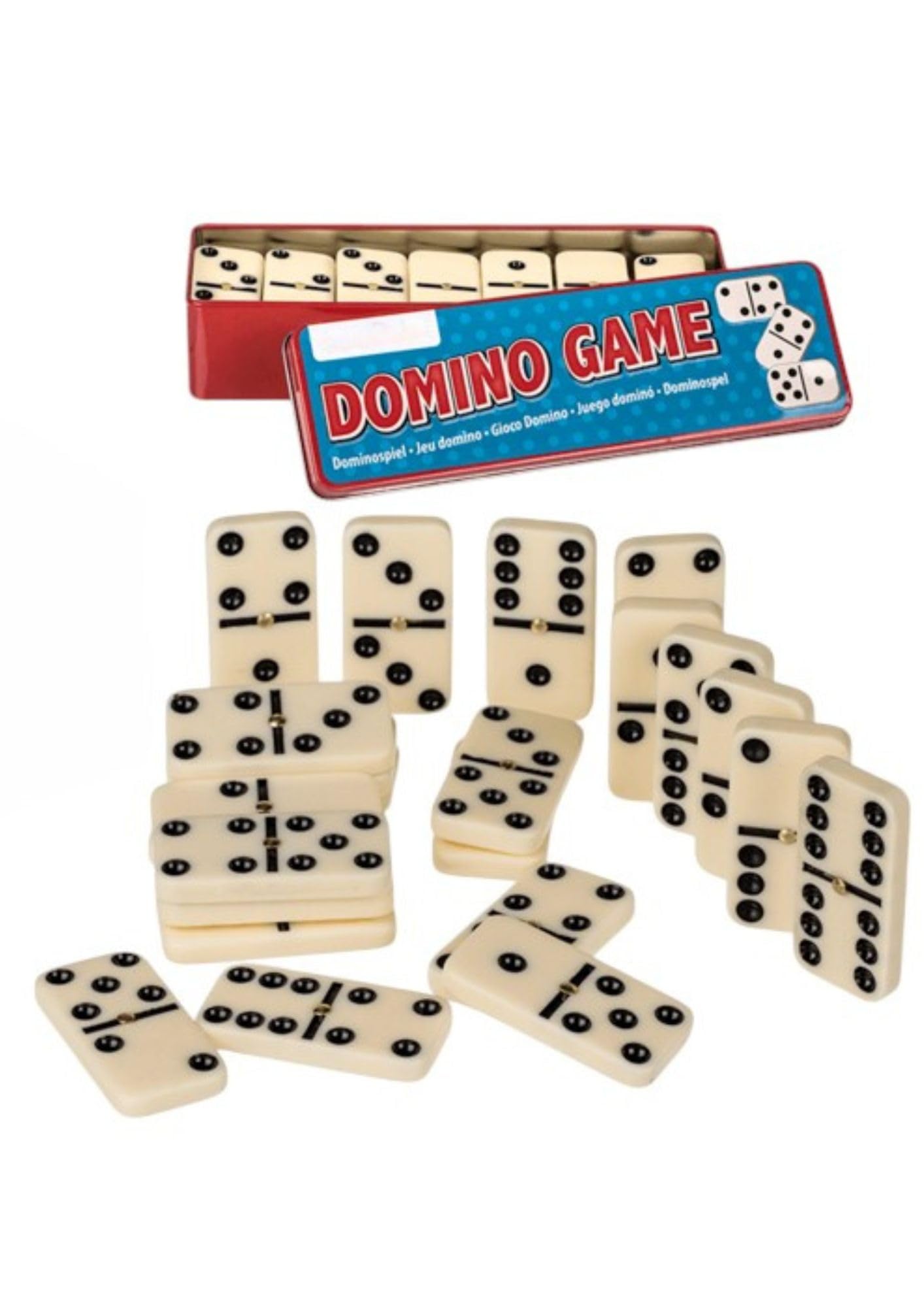 - CLASSIC BOARD GAME – This dominoes contains 28 pieces of durable plastic in a convenient tin box for storage and transport.