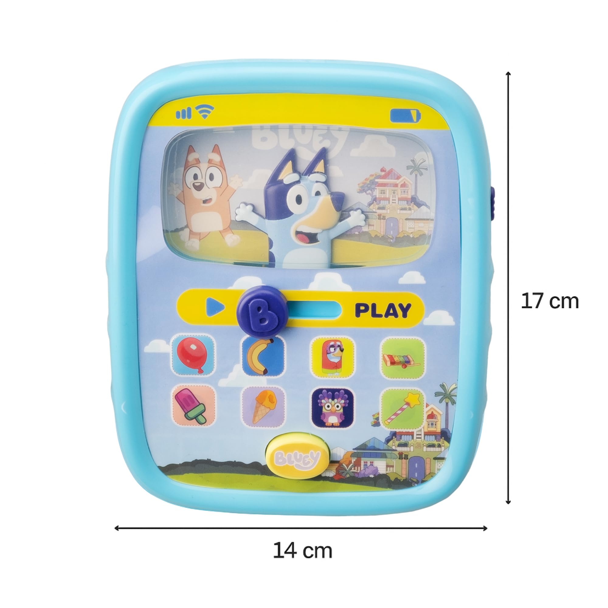 - Realistic Tablet & Remote Design The tablet measures 17cm by 14cm, and the remote control is 17cm long and 7cm wide. Both are designed to look like real devices with Bluey artwork, pretend battery indicators, and Wi-Fi icons, inspiring imaginative role play and screen-free fun.