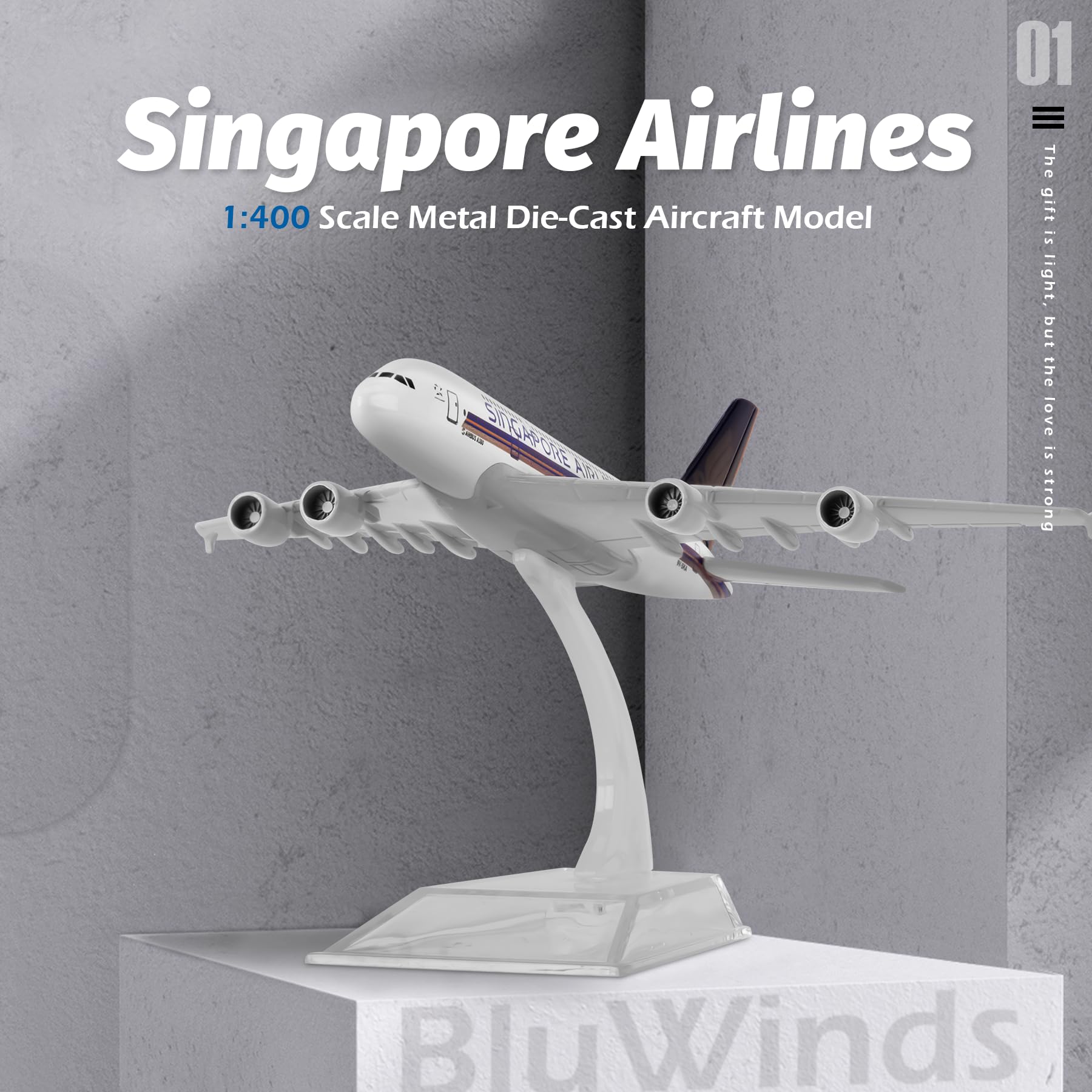 BluWinds 1/400 Singapore 380 Airplane Model Diecast Airplanes Model Aircraft Metal Alloy Model For Collection and Display