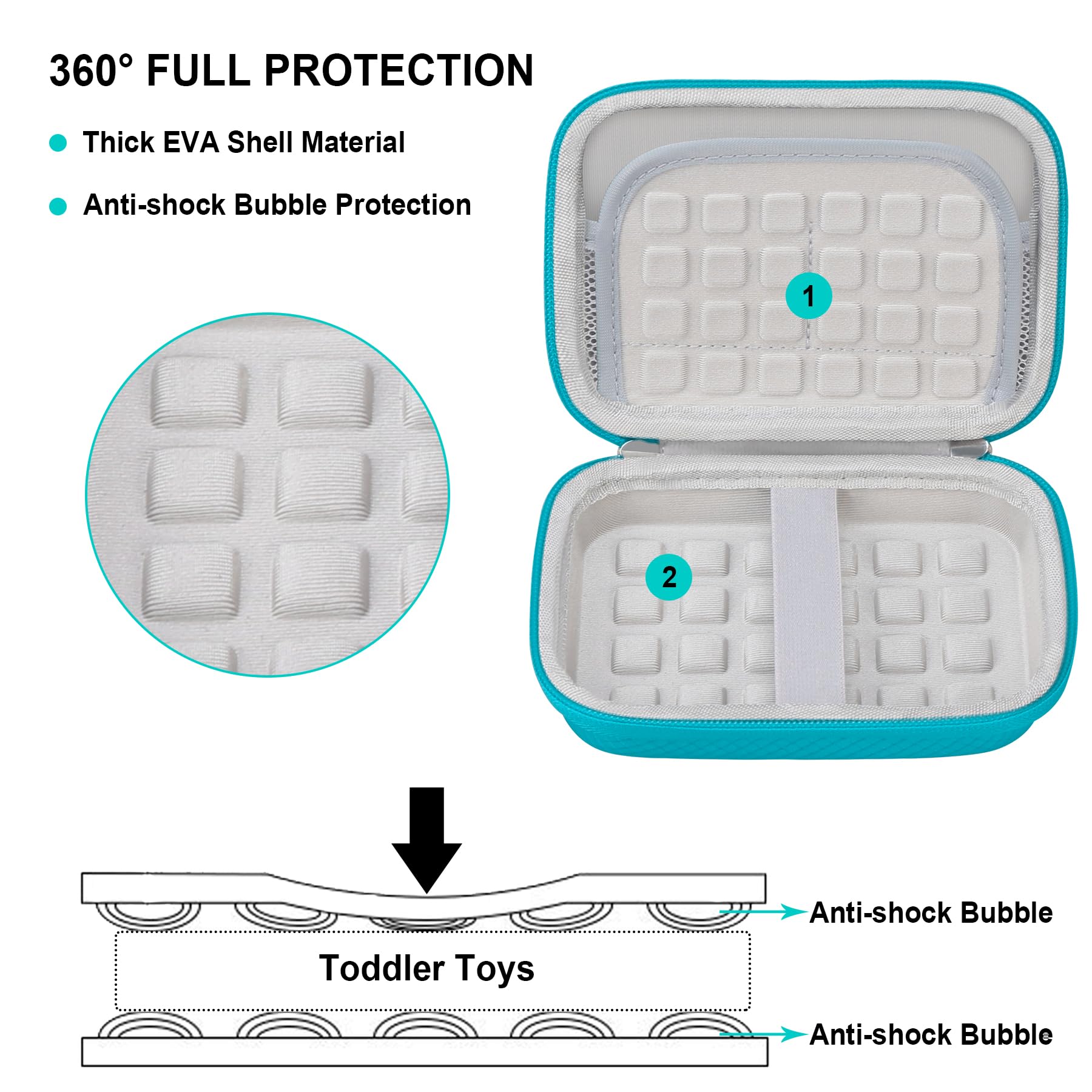 - This talking flash cards toy carrying case is made of high-quality EVA material, sturdy and durable, with the functions of anti-drop, shock-proof and water-resistant. The kids talking flash cards holder has soft bubbles interior to protect your talking flash cards for toddlers and other accessories from bumps and drops.