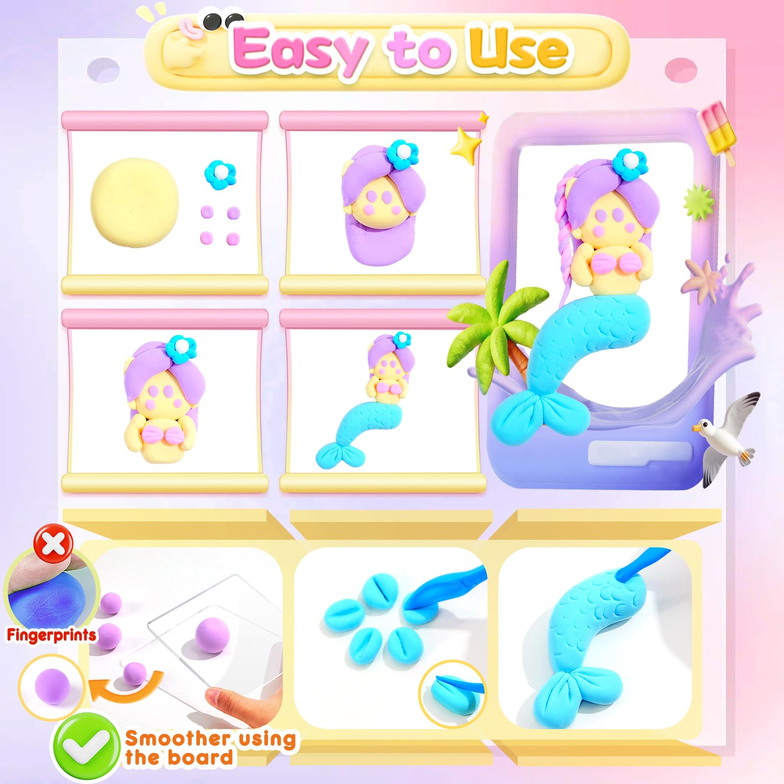 - DURABLE MATERIAL: Our air dry clay kits for kids uses high-quality, safe, and easy-to-use non-toxic polymer clay, which is an ultra-soft, lightweight air-drying clay. After natural drying for a period of time, it forms a durable surfaceno baking required! The perfect clay for children aged 3 and above