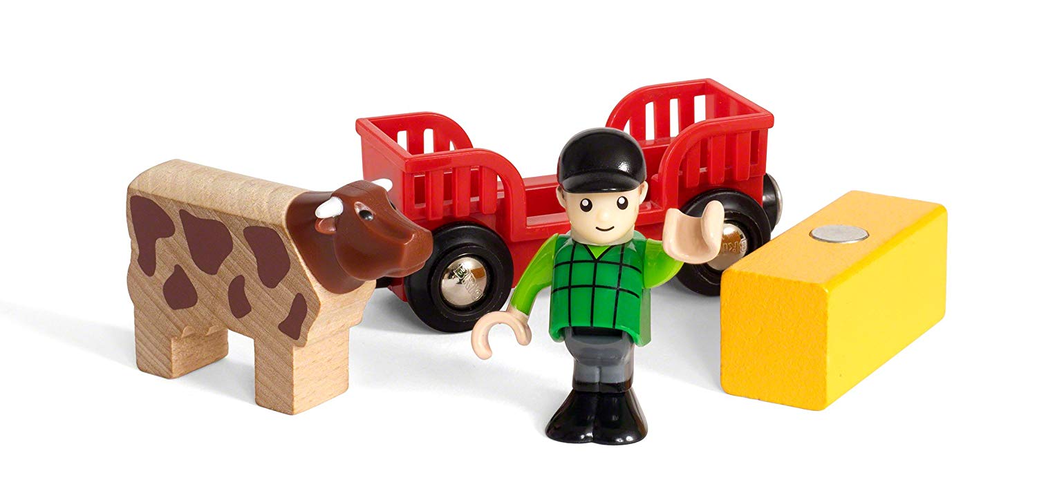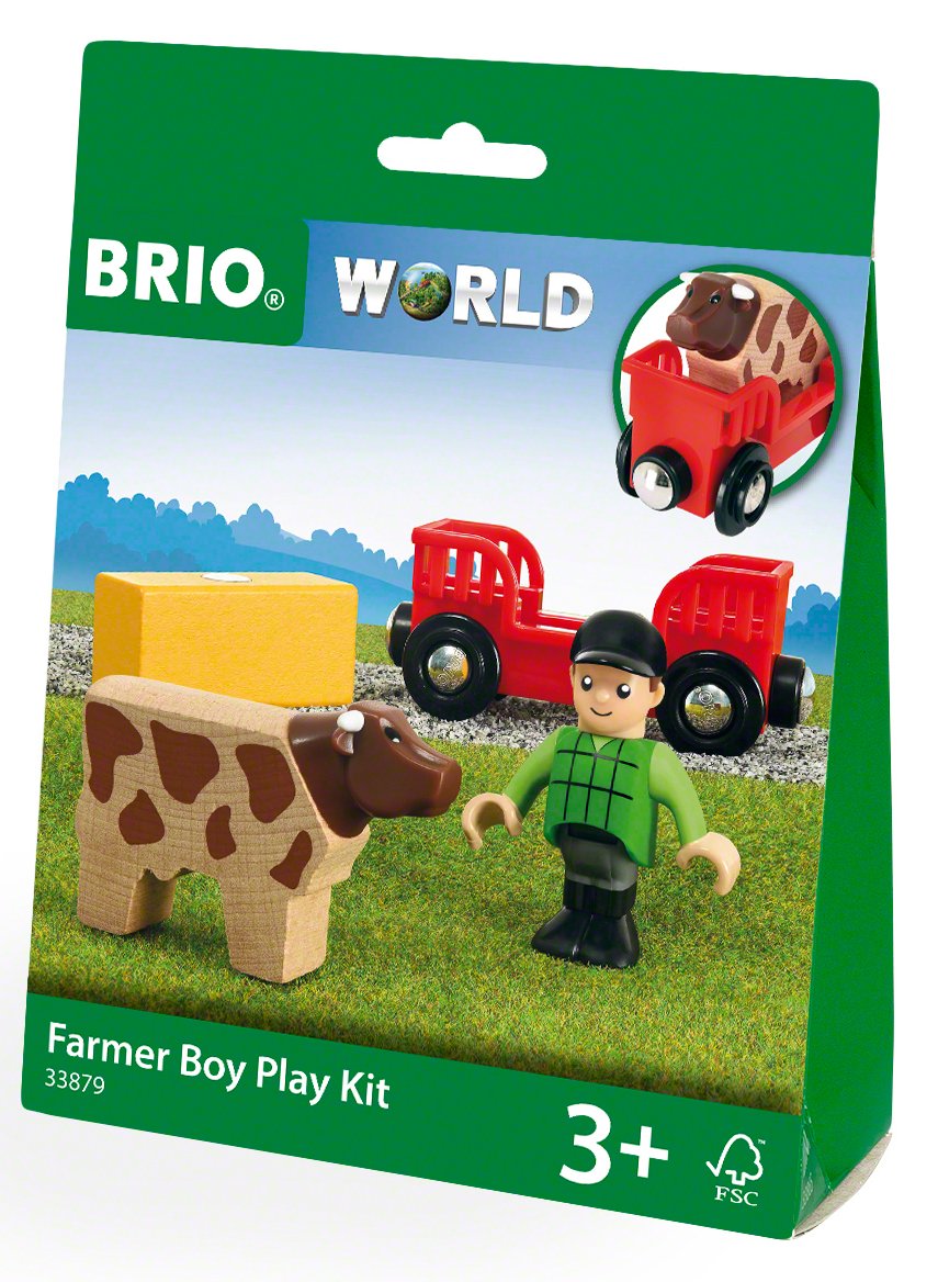 The farm boy play kit creates a scenario out of just a few items. The character can use the wagon to transport the hay load – or why not his Cow? a perfect gift or toy on its own, or addition to your Brio world. Includes 1x wagon, 1x figure, 1x Cow, 1x hay bale. Suitable for ages 3 years and up. Manufactured to brio’s high standards and from FSC certified wood. Each set is fully compatible with other Brio sets, tracks and trains. Brio products are made from very high quality plastic and beech wood from sustainable sources. The trains, wagons, carriages, and road vehicles all feature the classic Brio magnetic couplings allowing for easy connection to each other.