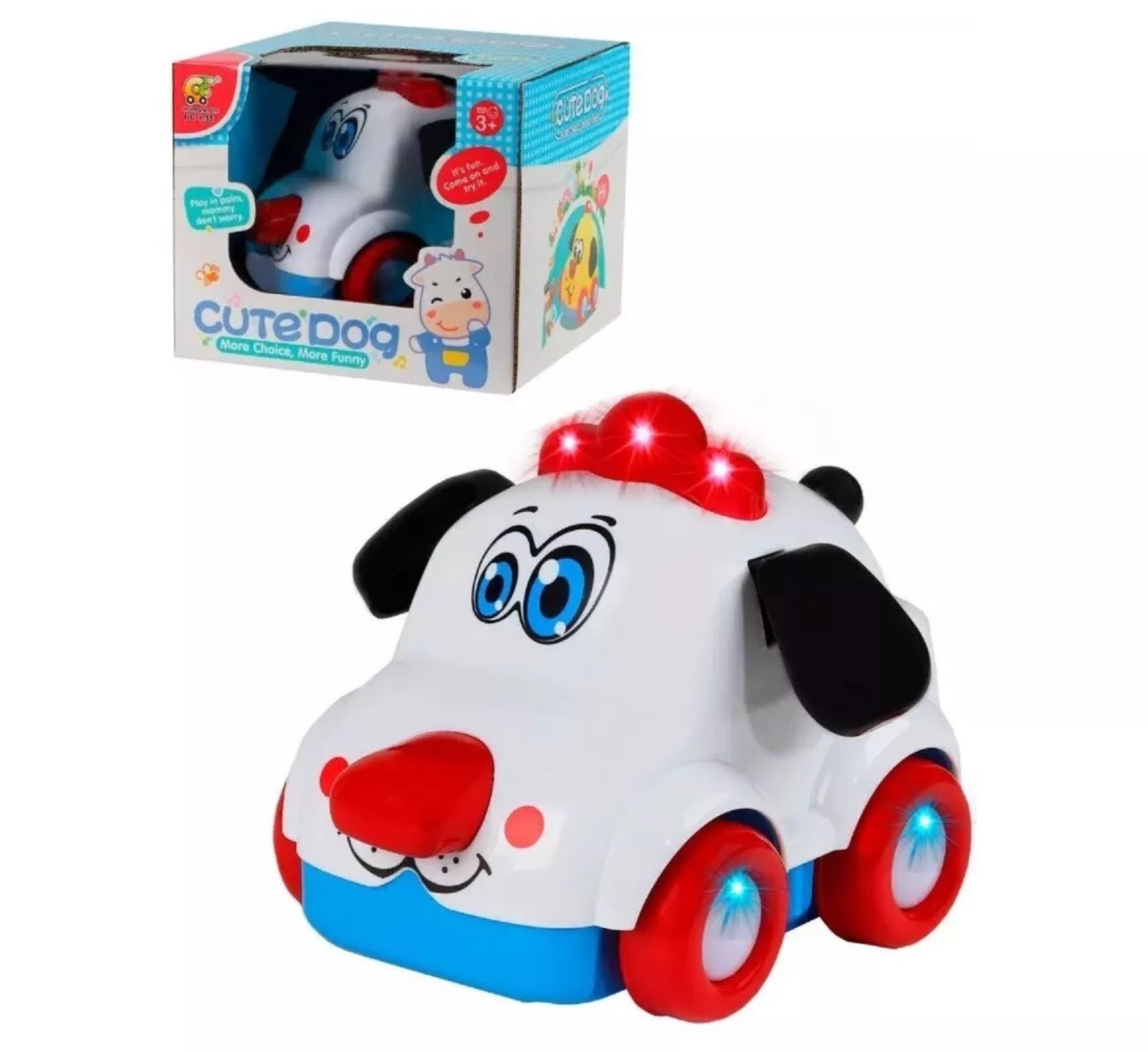 Delight your child with this adorable Puppy Car Toy! Featuring bump & go action, flashing LED lights, and cheerful music, this interactive dog car will bring endless laughter and excitement to toddlers. The puppy’s funny design, wagging ears, and light-up effects create an engaging play experience that stimulates imagination and motor skills. Made from durable ABS plastic with smooth edges, this toy is safe for children aged 3 and above. Perfect as a birthday present, Christmas gift, or surprise toy for boys and girls. Easy to operate – just insert 3 AA batteries (not included) and watch the puppy car zoom, bump, and go in new directions automatically. Bring joy, learning, and fun to playtime with this charming musical puppy toy car!