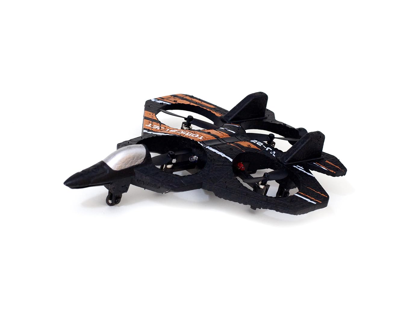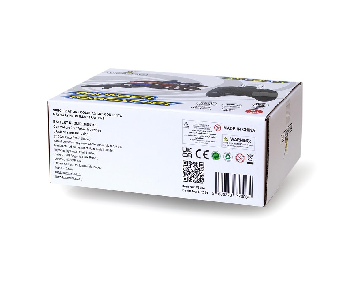 The Thunder Tomcat Jet is designed with advanced gyroscopic stabilization, ensuring steady, balanced flight for both beginners and experienced flyers. This feature allows for smooth maneuvers, making every aerial adventure easy to control and fun to master. With altitude hold functionality, the jet can hover at a consistent height, giving pilots the confidence to explore the skies with ease. This feature enhances play by allowing for longer, more stable flights, perfect for practicing tricks or navigating challenging routes. One of the most exciting aspects of the Thunder Tomcat Jet is its 360-degree stunt feature. With just a push of a button, the jet can perform impressive flips and rolls, adding a thrilling, action-packed element to each flight. It’s a toy that lets kids and adults alike feel the thrill of commanding a high-flying stunt plane. The 2.4 GHz remote control offers a reliable, interference-free connection, ensuring responsive handling from a distance. Built with a lightweight foam body, the Thunder Tomcat Jet is both durable and gentle, ideal for safe indoor flights and outdoor play alike. Its small size and sturdy construction make it the perfect companion for high-energy play sessions, anytime and anywhere!