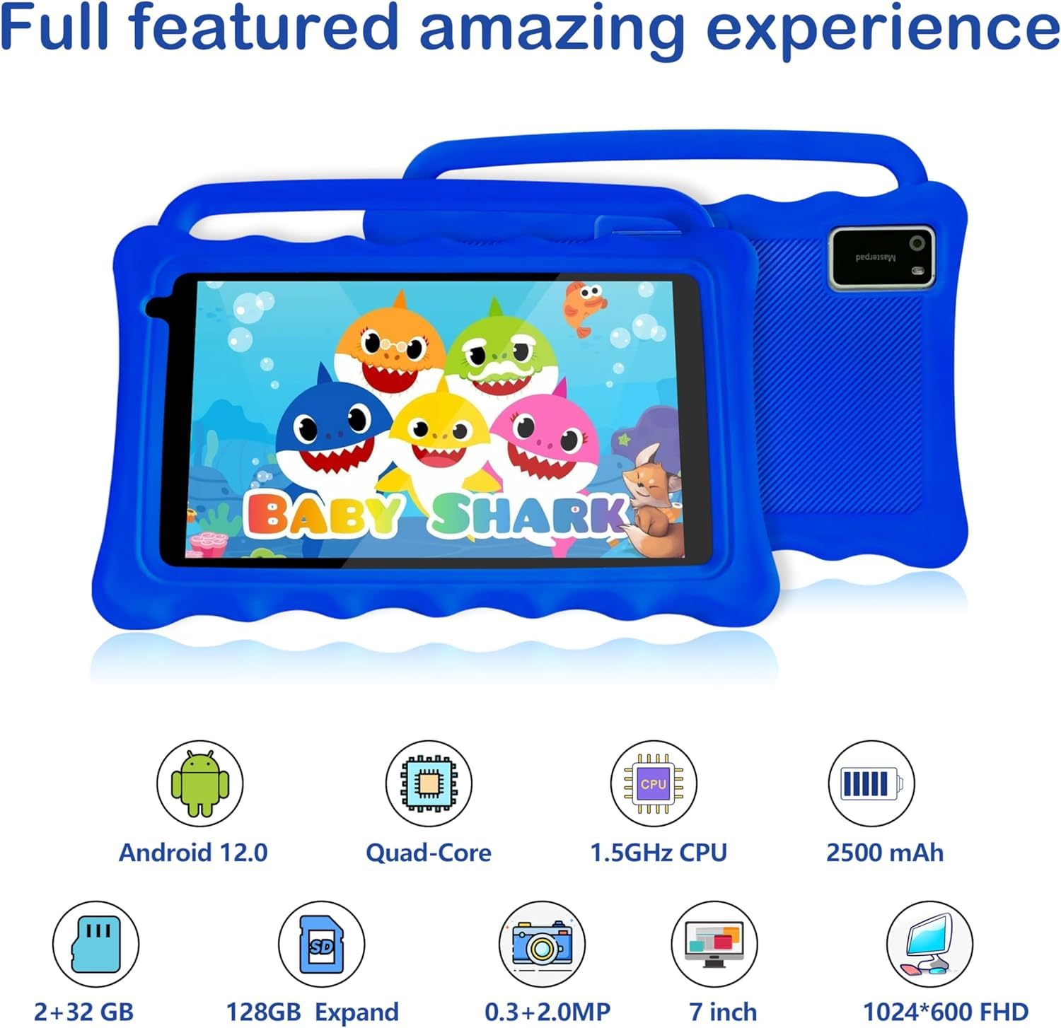 - Durable Tablet with Shockproof CaseFood-grade silicone case and holder, hands-free for children. The case will protect the tablet from damage while keeping it portable. And the stand behind the tablet allows kids to watch and video chat hands-free. This is an excellent gift for children to aid in the development of skills and imagination through joyful play.