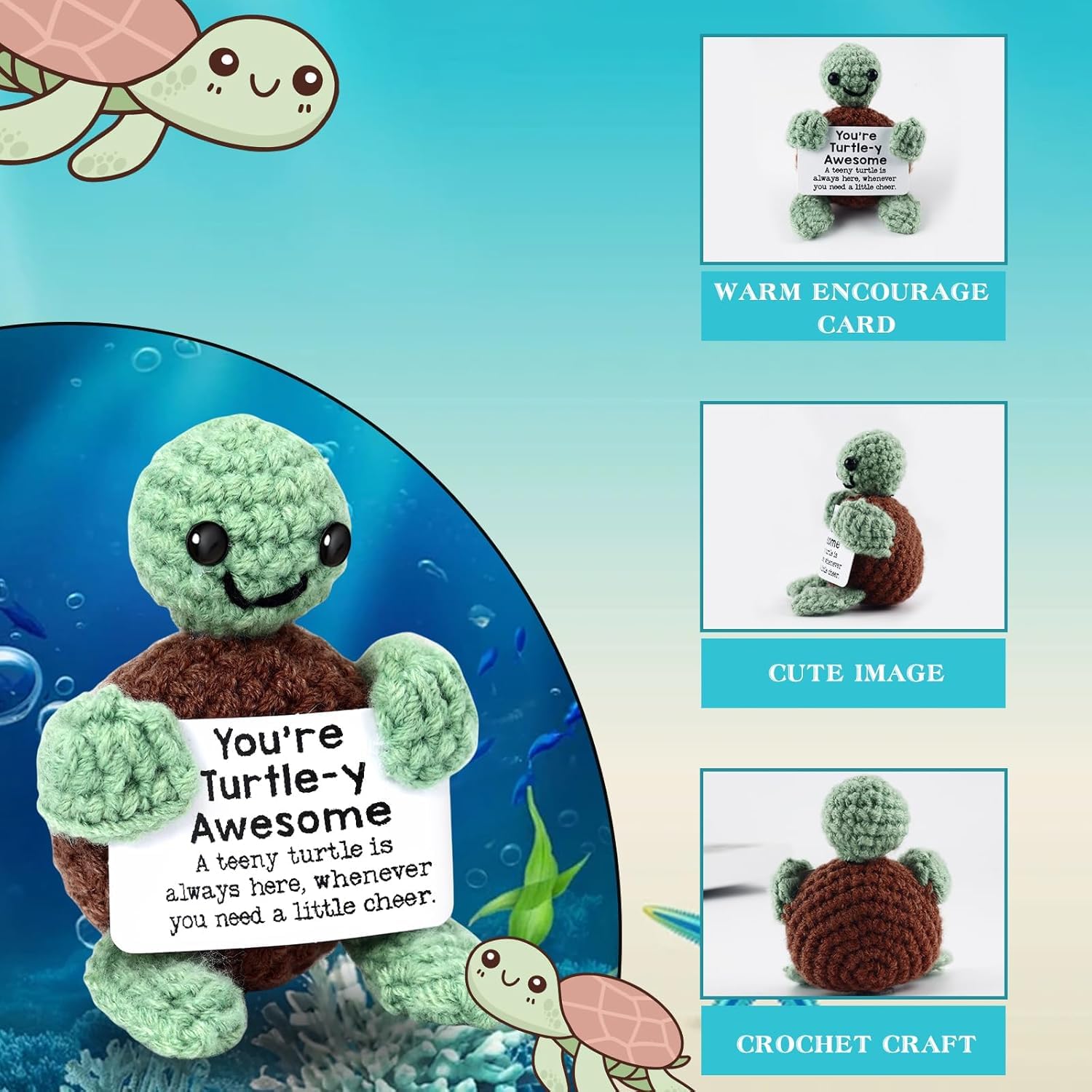 Emotional support turtle doll comes with an emotional encouragement card. When you feel lost or upset, it will give you strong emotional support and make you feel warm and comforted.