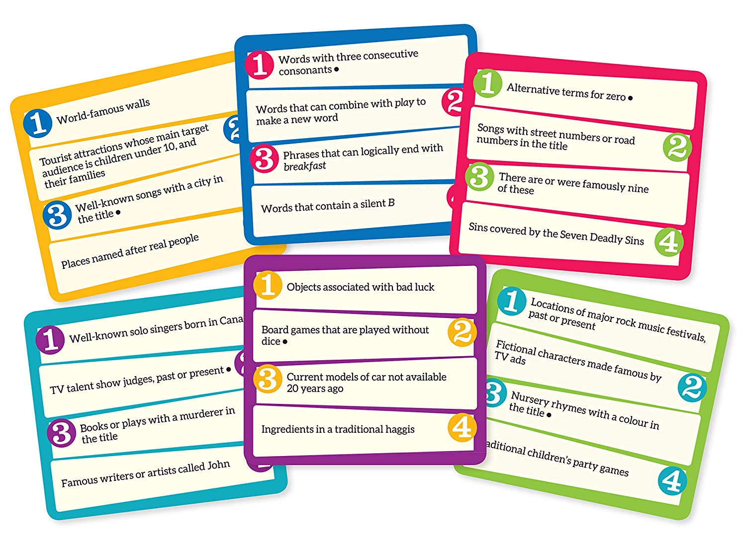 - There are 6 different subject cards to collect and win: People, Places, Numbers, Words, Things and Random