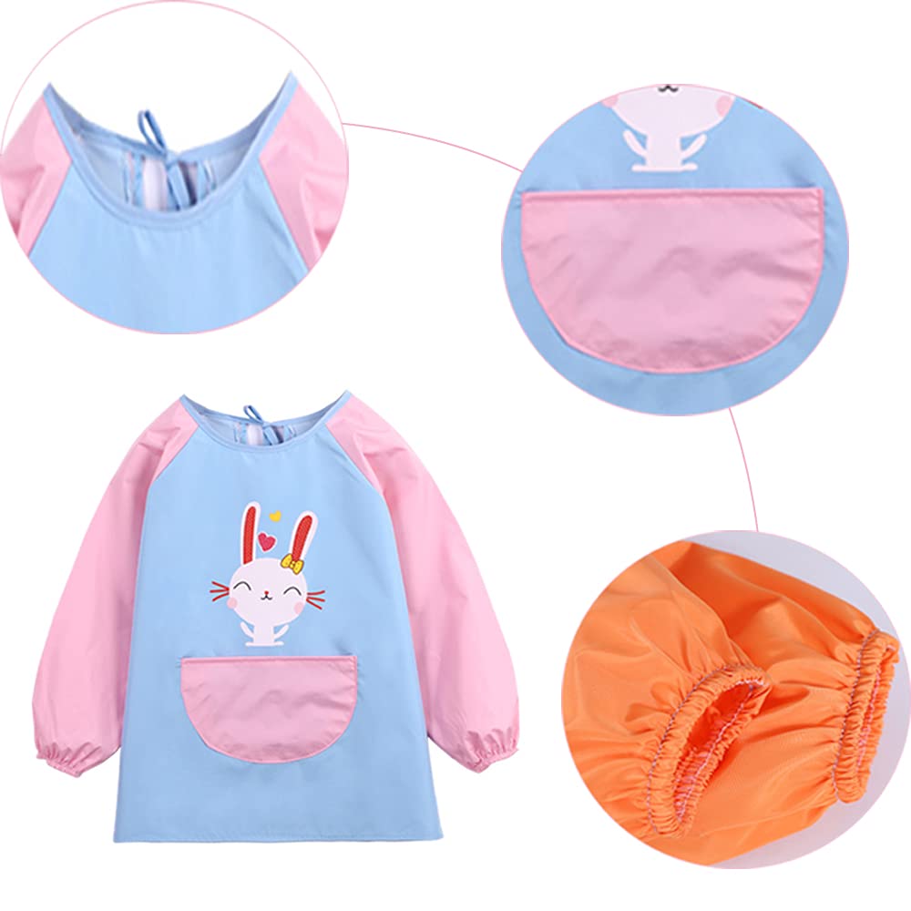 • Rabbit style: our children’s painting apron has a small rabbit pattern that girls love so that children cannot put it out of their hand and like to wear an apron so parents save themselves from washing clothes.