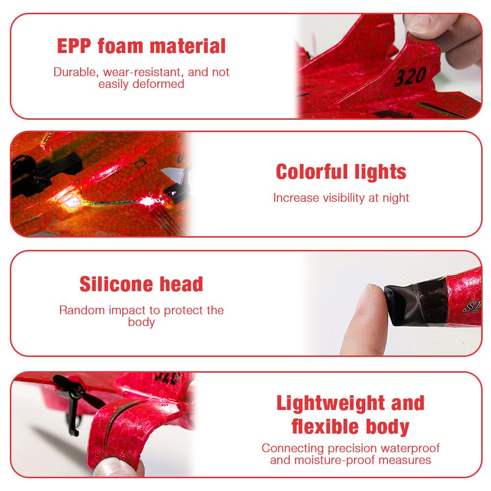 【Safe and Durable】: The structure of this aircraft is sturdy and durable. RC airplane is made of highly elastic foam material specially made for model airplane toys. It is highly flexible and lightweight. The EPP material is safe and non-toxic and will not be easily damaged in collision, ensuring safe flight and long life. time use.