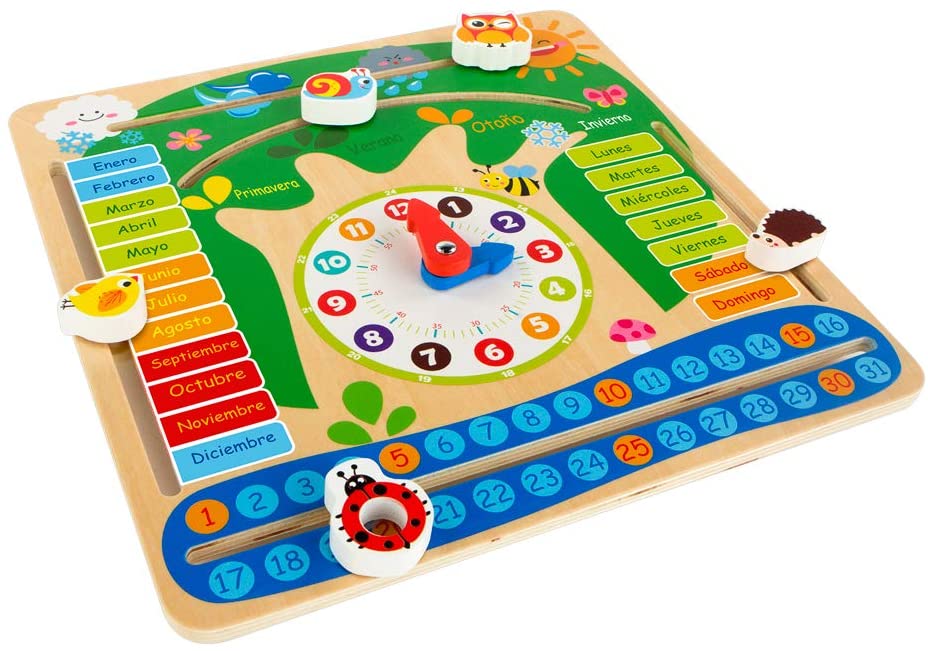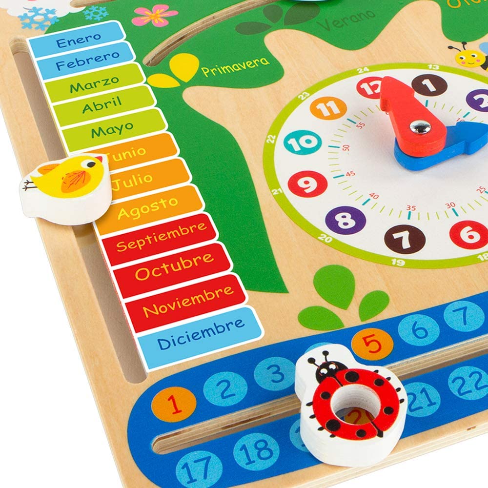 WOOMAX Natural Wood Educational Calendar Clock (ColorBaby 43896)