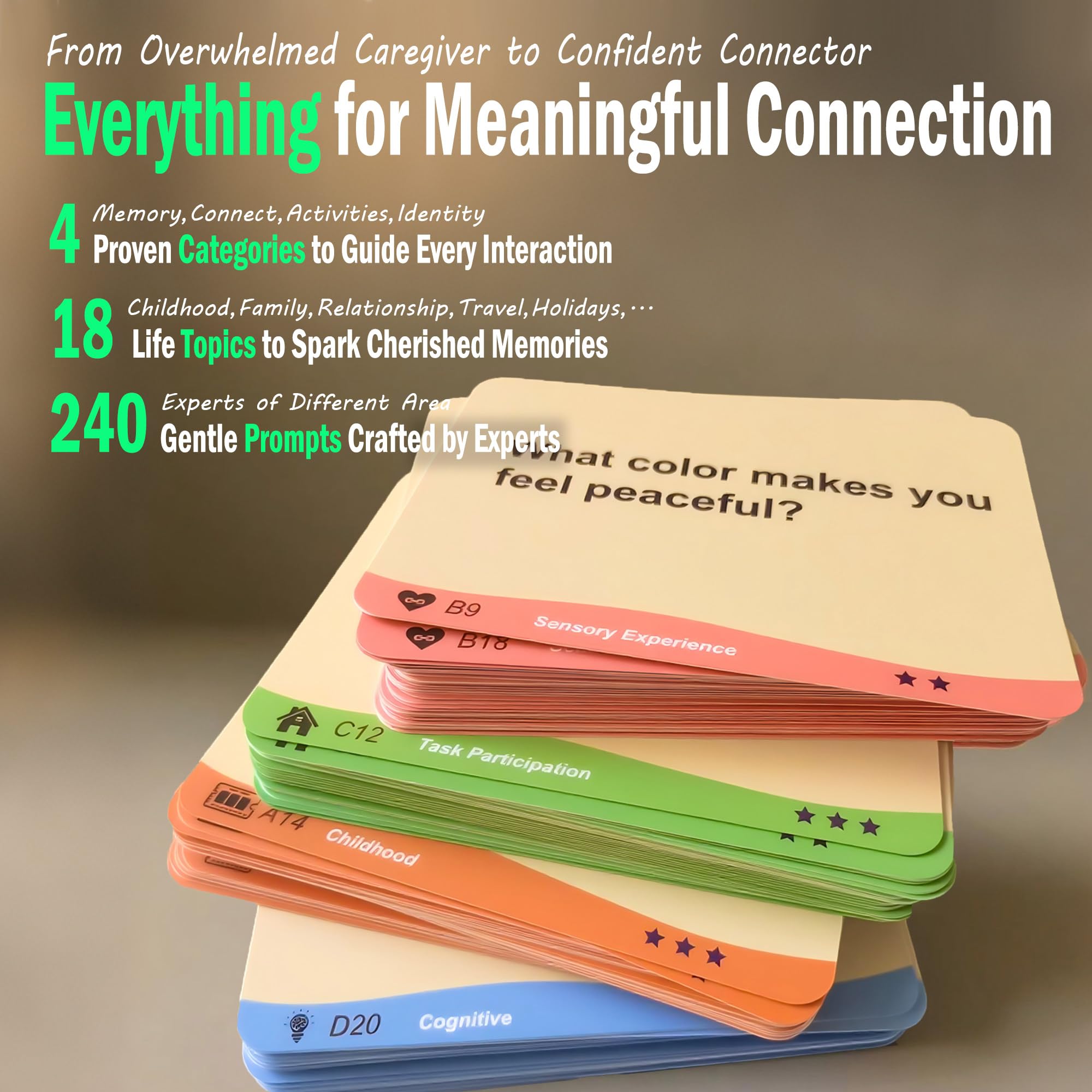 - GO BEYOND THE SILENCE, REDISCOVER THE PERSON YOU LOVE – Are you tired of painful silences and the frustration of conversations that go nowhere? Imagine watching your loved ones eyes light up, sharing a forgotten childhood story, or hearing them laugh from the heart again. These cards are not just questions; they are a bridge back to the person you know and love, turning moments of care into moments of pure connection.