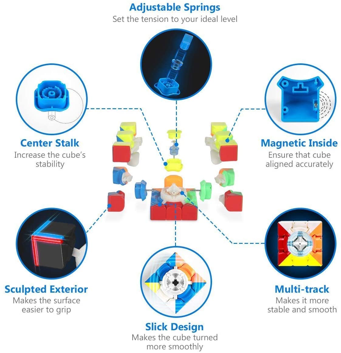 - Magnetic Positioning Technology – 48 pcs magnets inside the cube improve the hand feel, magnet slots ensure the magnets placed accurately