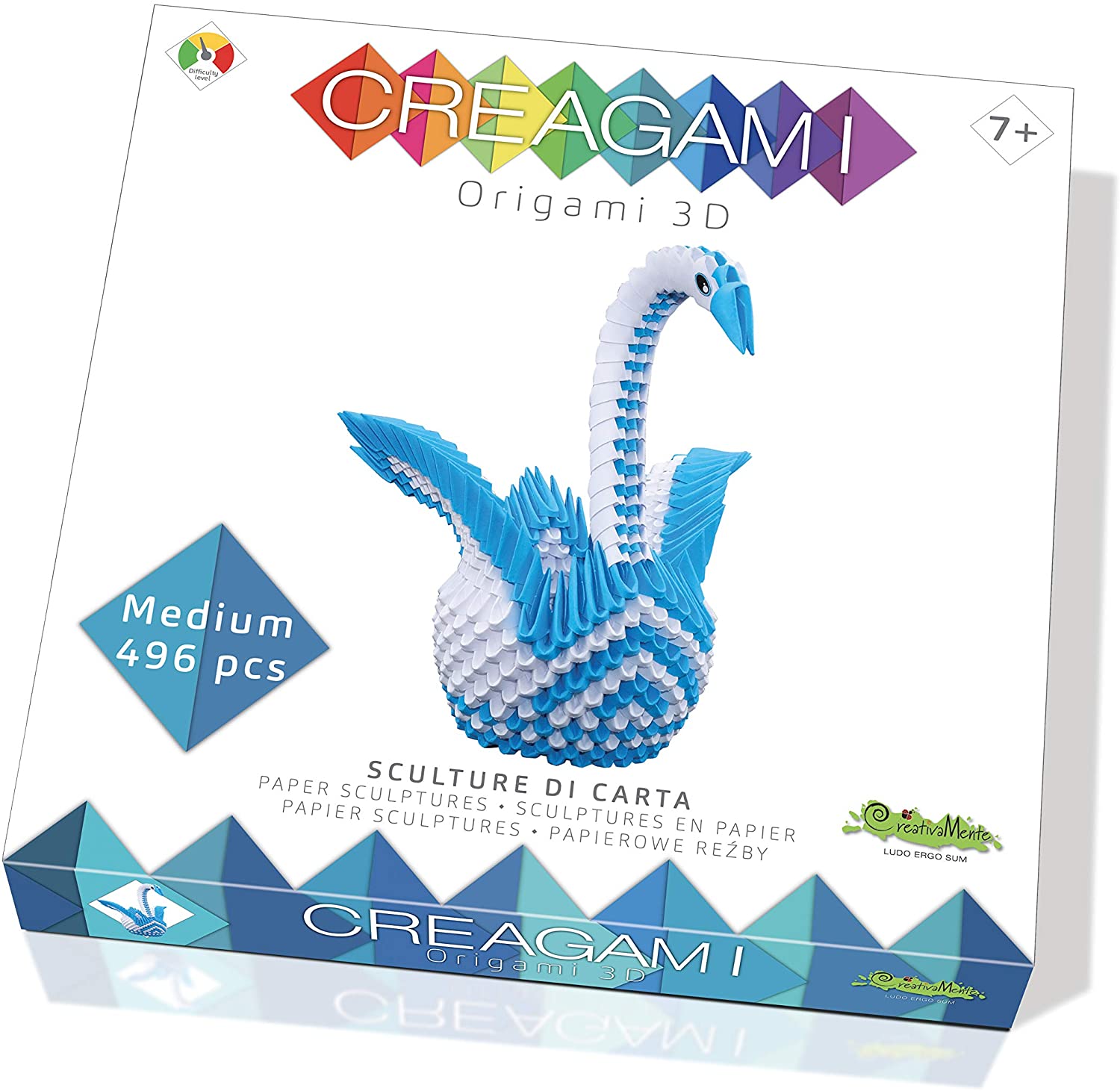 Creagami is a modular origami kit. Repetitive folding of individual cards is a great training for the development of concentration and fine motor skills. The numerous sculptures that can be built, colourful and creative, are a perfect addition to any corner of the house. The kit includes cards of various colours, each with 24 pre-cut cards and with the folding guides, with which you can make the necessary forms to create your own 3D sculpture.