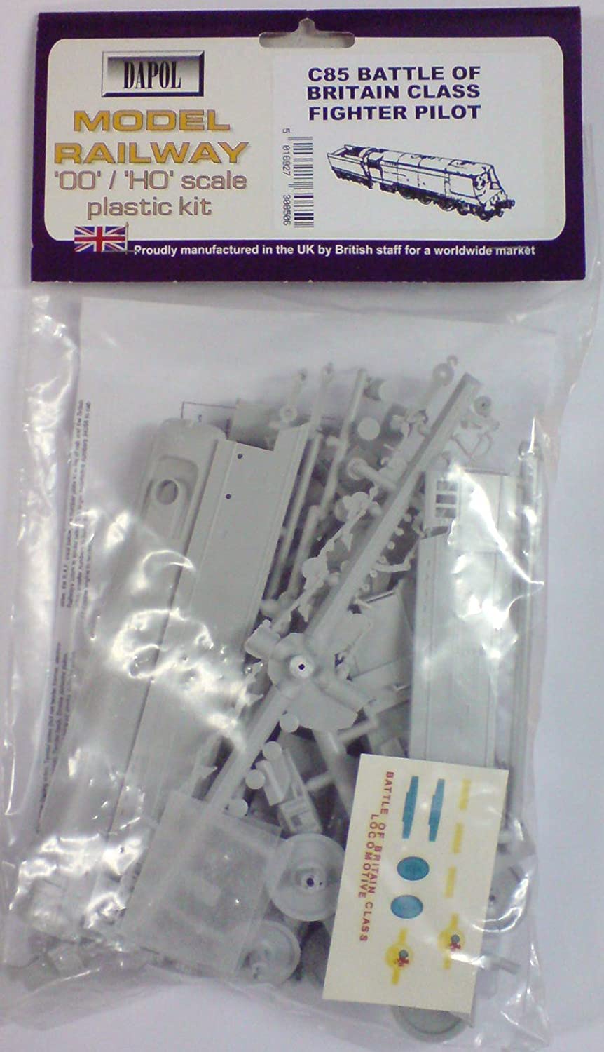 Dapol OO Gauge 1:76 Scale Plastic Model Kit – Battle of Britain Class Steam Locomotive – “Fighter Pilot”Manufacturers Description: OO Gauge Battle of Britain Class Fighter Pilot. Kit will require assembly, painting and supplied transfers applying. Please note model shown is 92 Squadron, but is identical except for decals. PLEASE NOTE THAT THIS IS A PLASTIC MODEL KIT AND IS SUPPLIED UNASSEMBLED AND UNPAINTED. PAINT AND GLUE NOT INCLUDED.