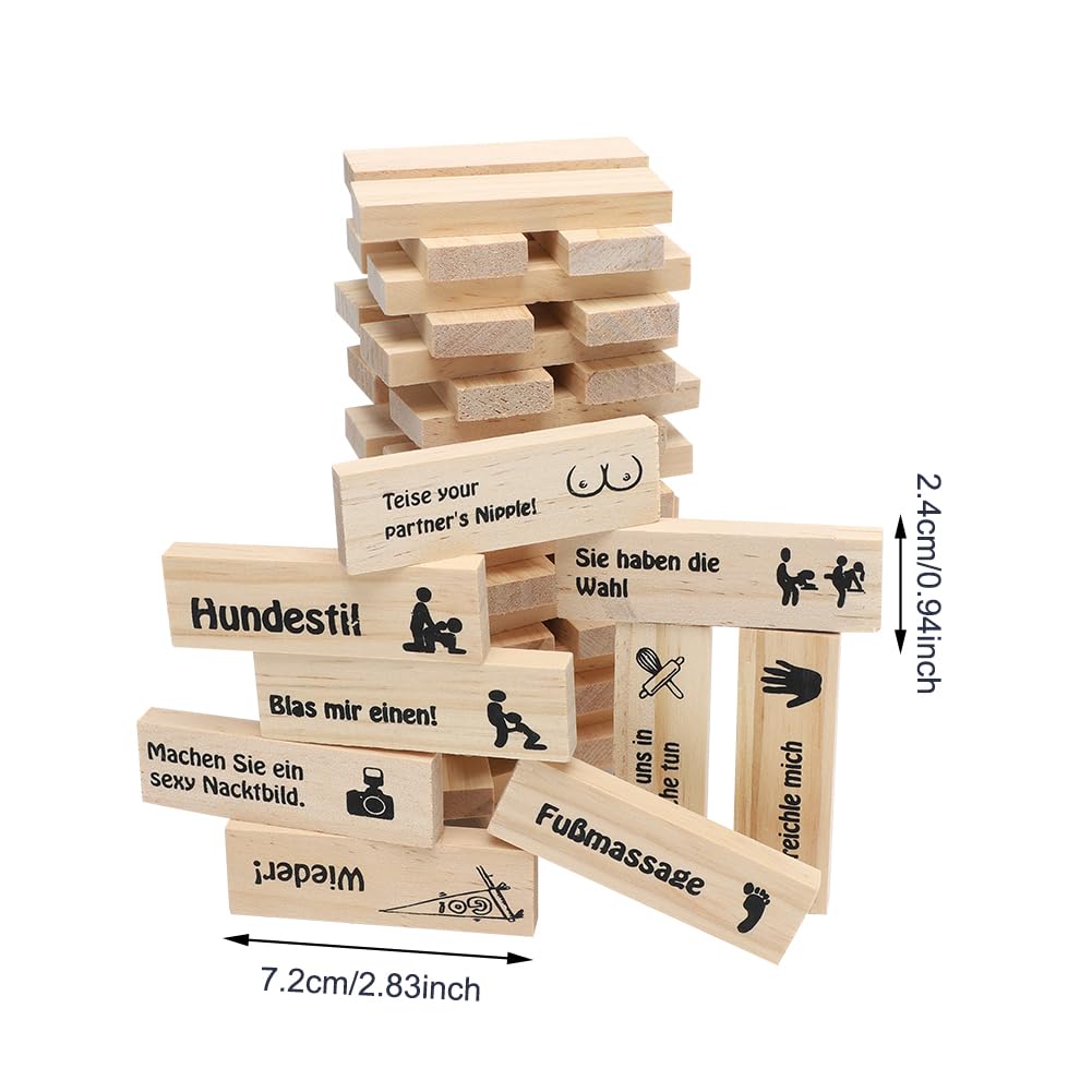 DASIAUTOEM The Lust Tower Blocks, Naughty for Adults, Love & Naughty Stacking Tower Wooden Blocks, 48 Wooden Blocks with Truth or Dare Questions and Challenges for Couples Dates