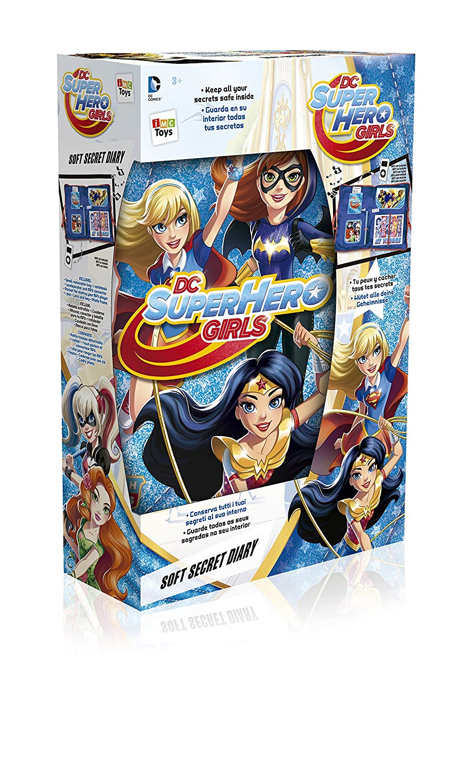 Keep all your secrets safe inside this funky DC superheroes girls soft secret diary! write and save your secrets on fabric pages with washable pens. This multi-use diary can be used as a soft pillow or cute handbag, it’s perfect for sleepovers! set comes complete with a case for storing all your keep sakes items and photographs. This special diary also comes with an LAN connector for your MP3 player (MP3 player not included).