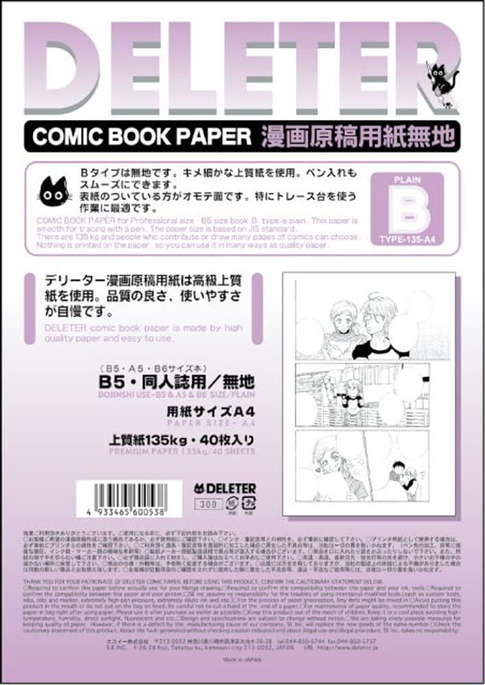 Derita comic manuscript paper and premium fine paper. Good of quality, ease of use is proud. B type is plain. Use the texture fine quality paper. Pen holder can also be smoothly. In particular, it is the best to work to use the trace table. Quality paper 135kg · 40 pieces paper size A4